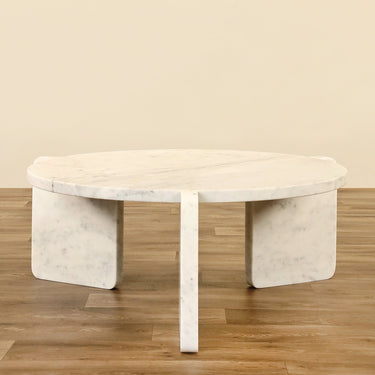 Raised on thick slat legs, the Nasello Coffee Table offers a circular shape to round out a seating area and offer service from every side. The contemporary style shows off the beautiful marble to perfection to lend a rich look to any space.