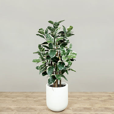 A symbol of abundance, happiness, and wealth, this artificial rubber plant just might bring good fortune to your home. This faux tree looks and feels astonishingly real without requiring any of the maintenance of an indoor plant. Place it in an empty corner of your home to bring life to the space. Simply bend out its branches and place it in a pot of your choice to complete the look.