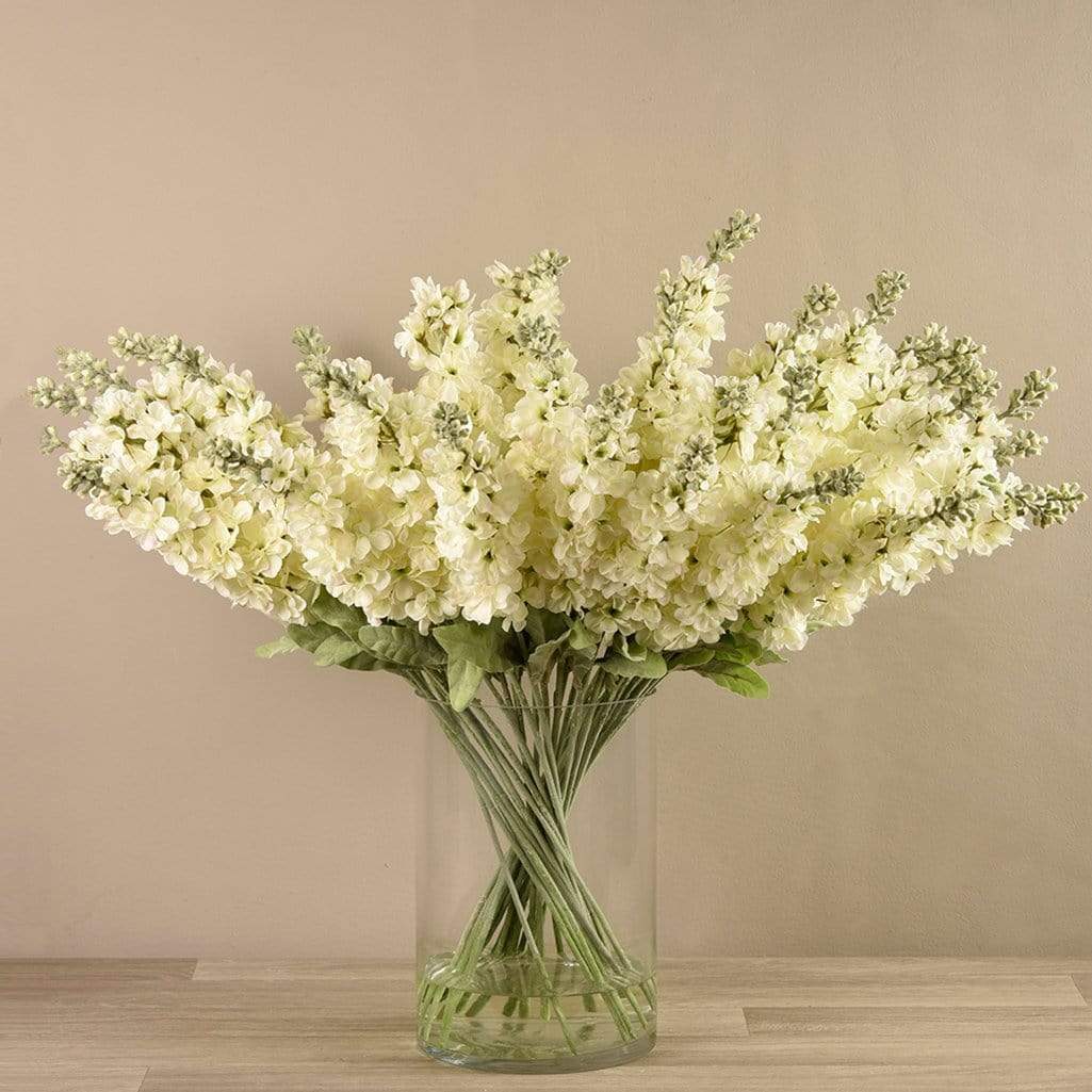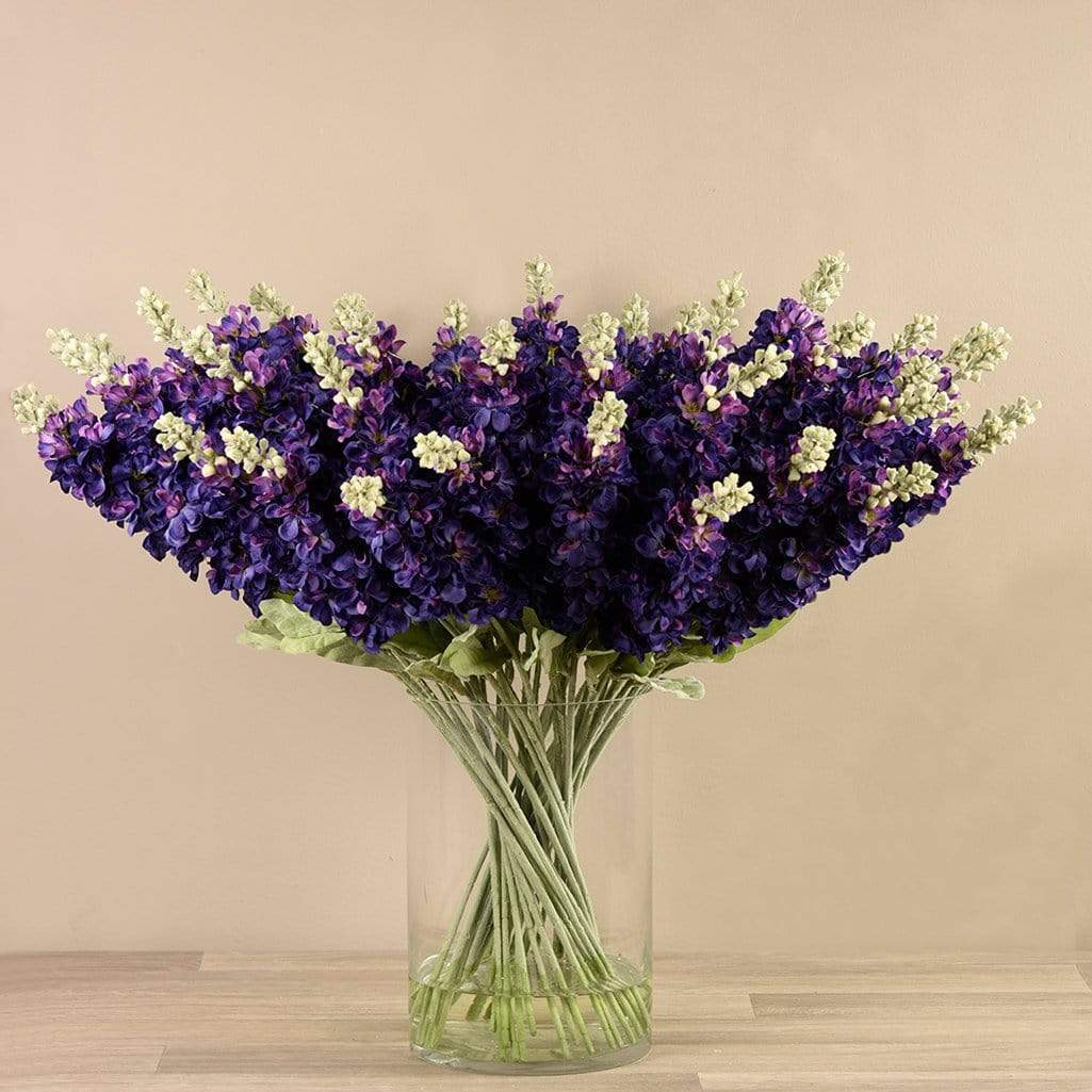 Artificial Delphinium in Glass Vase
