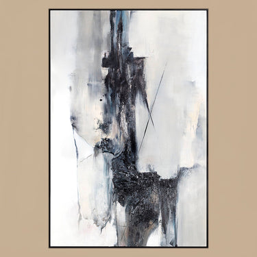 The interplay of black, grey, and white exudes a sense of sophistication and modernity in this painting. The elegant composition of this acrylic on canvas painting invites contemplation and appreciation for the nuanced balance of light and shadow. This painting is a testament to the power of simplicity, offering a timeless and elegant addition to any space.