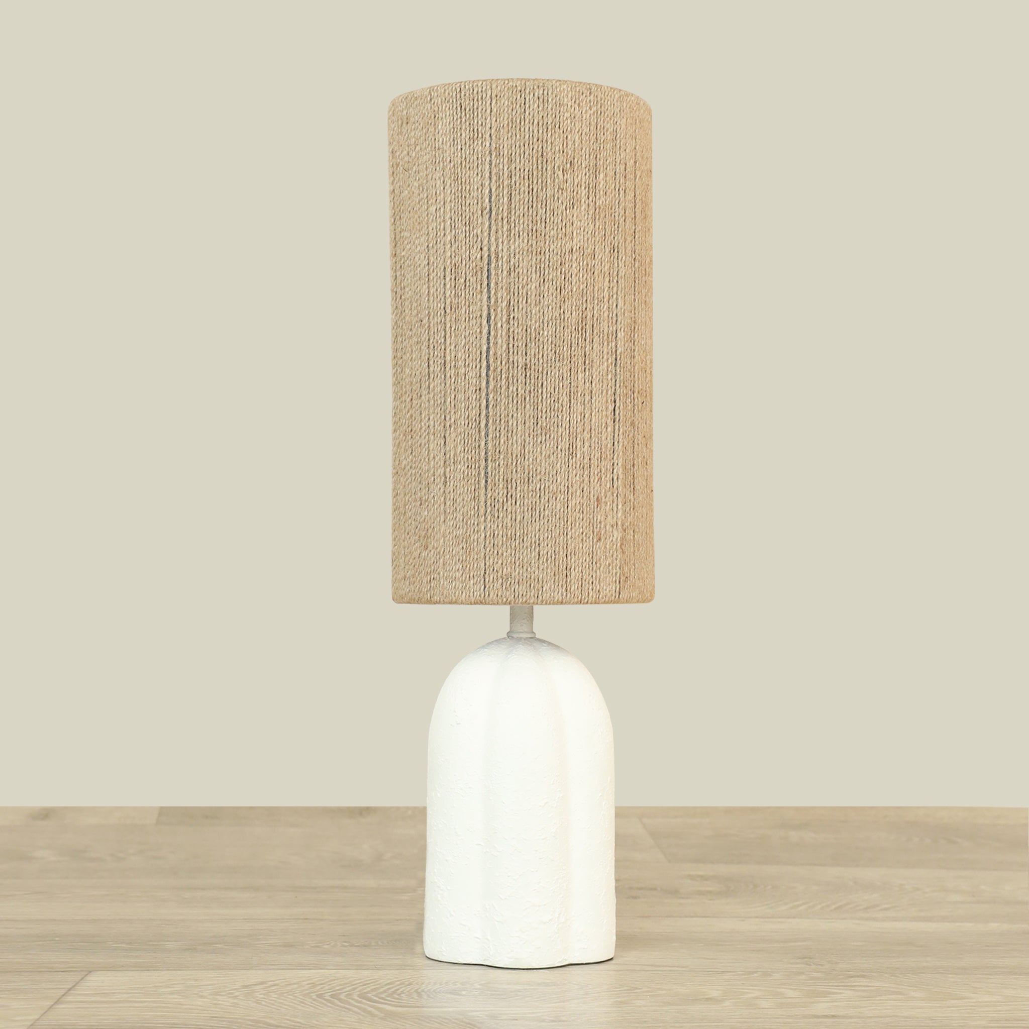This table lamp combines a clean white base with natural rope detailing, creating a textured focal point that bridges contemporary and organic design sensibilities.
