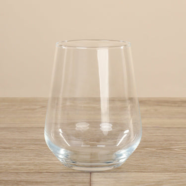 Simply designed this clear glass stemless tumbler is perfect for pairing with many designs and colors to create a lovely table setting.