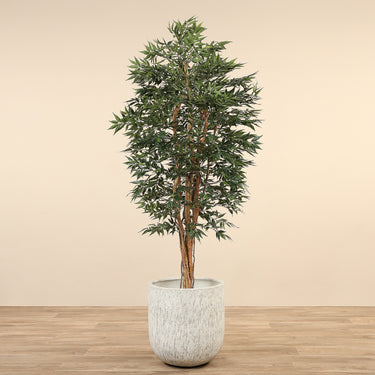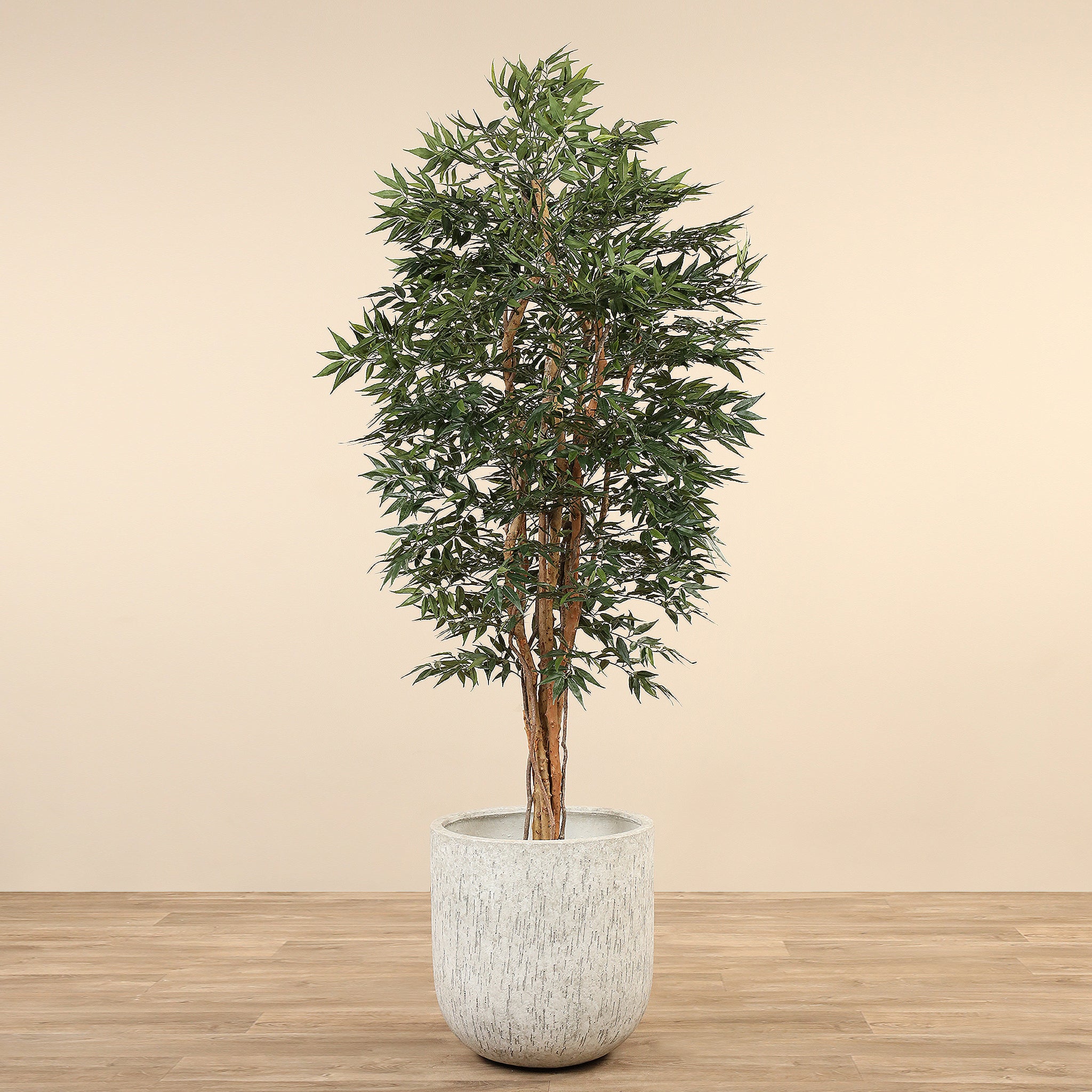 Add appeal and a natural touch to your decor with a beautiful artificial Shirakashi Tree. Wonderfully lifelike, this tall tree has elegant luster leaves and realistic bark to lend textural interest to a room. This tree comes fully assembled – simply bend out the branches, place it in a pot, and decorate your room.