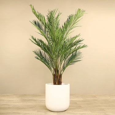 Lush greenery with a dose of majesty. This green artificial palm spray is shockingly lifelike to the eye and to the touch. Each tree comes fully assembled – simply bend out the branches to your desired fullness, add a pot of your choosing, and decorate your room.
