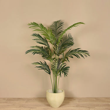 Lush greenery with a dose of majesty. This green artificial palm spray is shockingly lifelike to the eye and to the touch. Each tree comes fully assembled – simply bend out the branches to your desired fullness, add a pot of your choosing, and decorate your room.