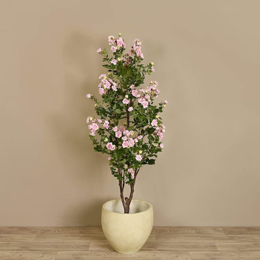 A symbol of pure love, this stunning Rose Tree will never wilt or lose any of its beauty. Designed by expert florists, this faux tree has gorgeous greenery and lush blooms. This tall tree arrives fully assembled – simply arrange the branches, place it in a pot of your choosing, and decorate your room.
