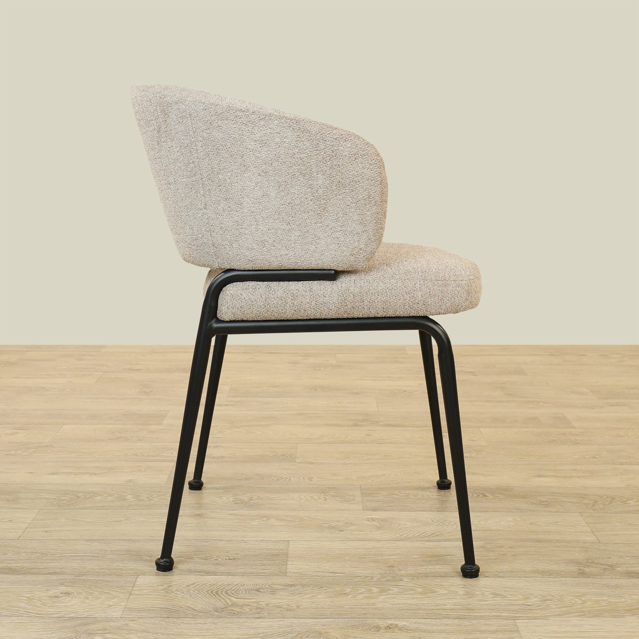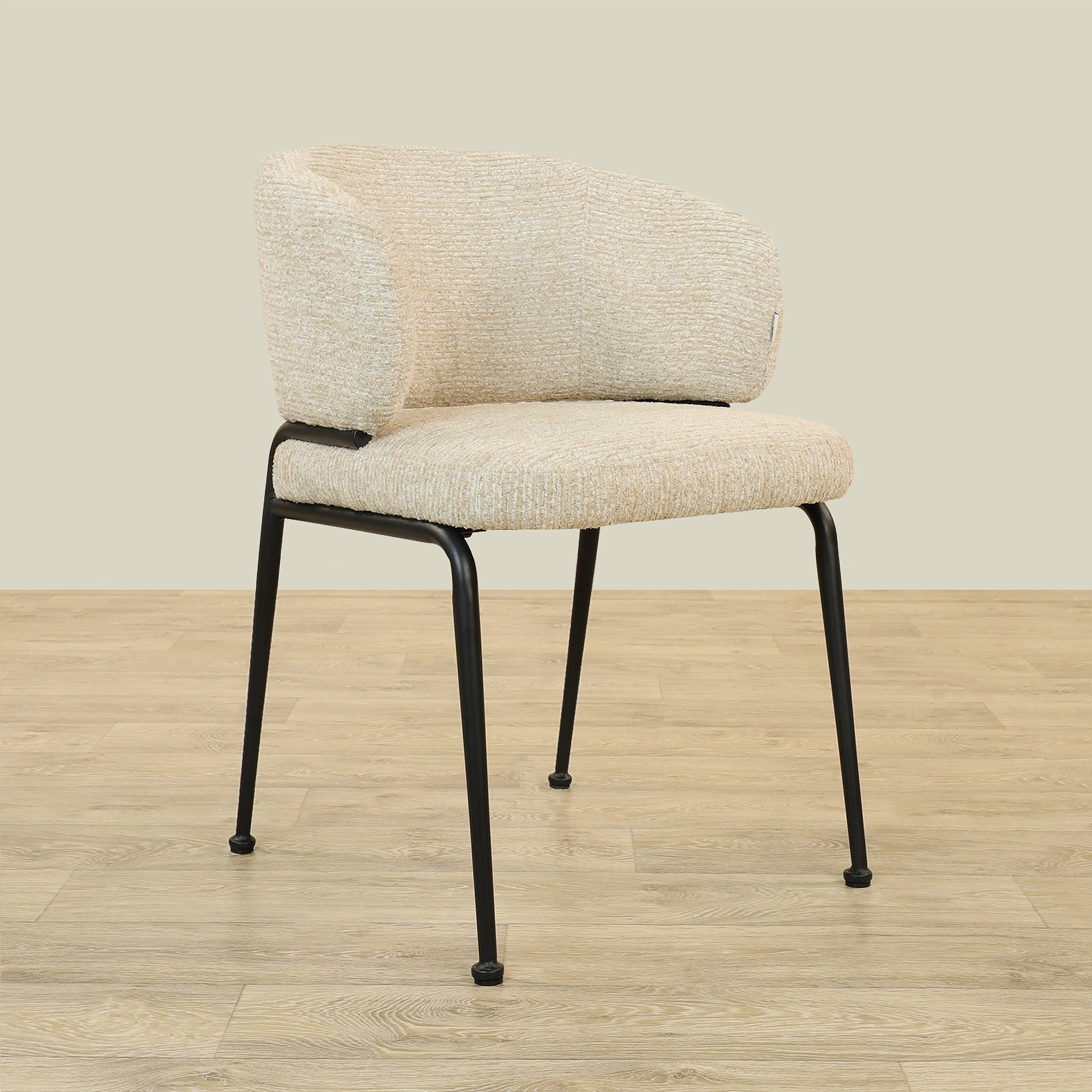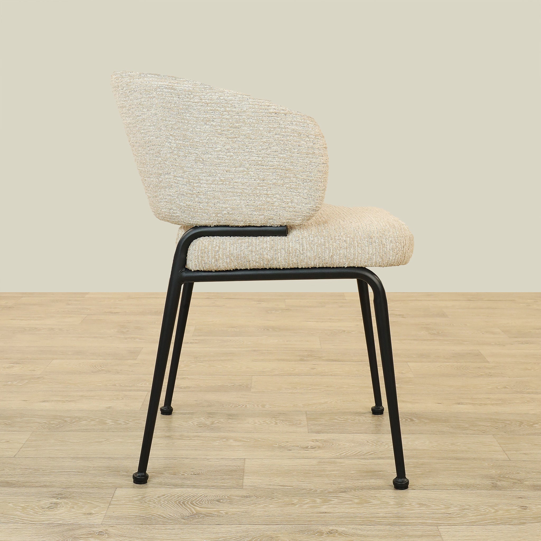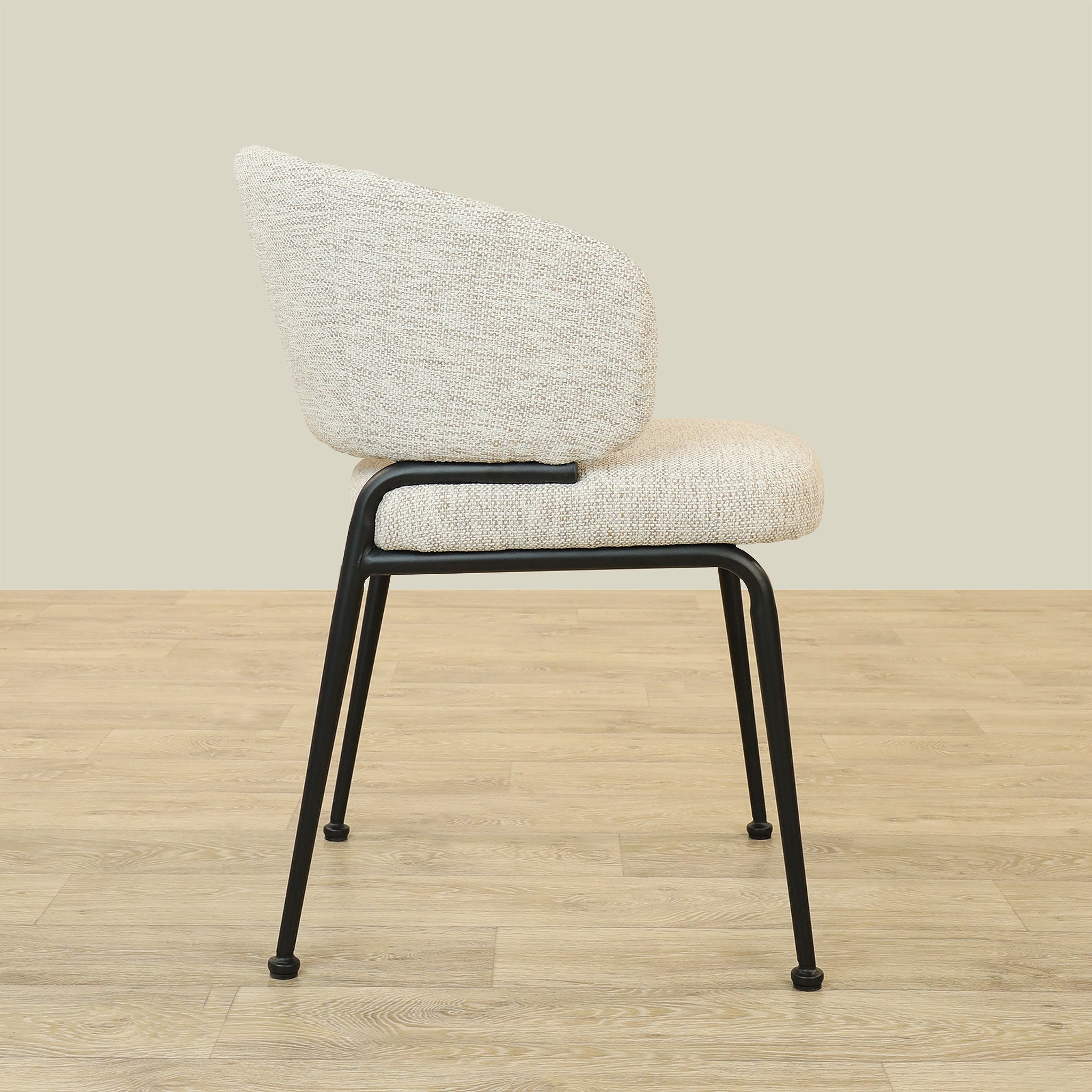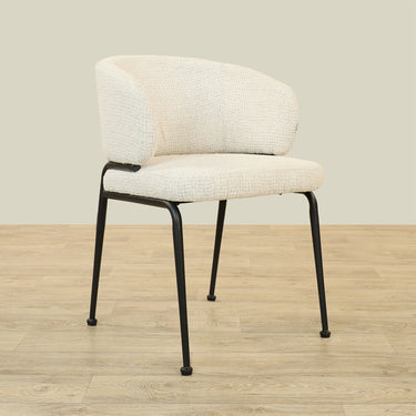 The Alder Dining Chair combines sleek plywood craftsmanship with soft fabric upholstery and a sturdy metal base, offering both comfort and durability.