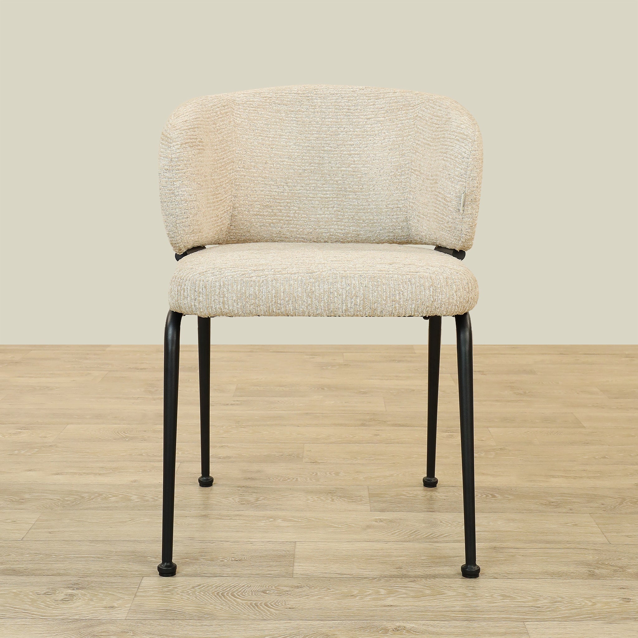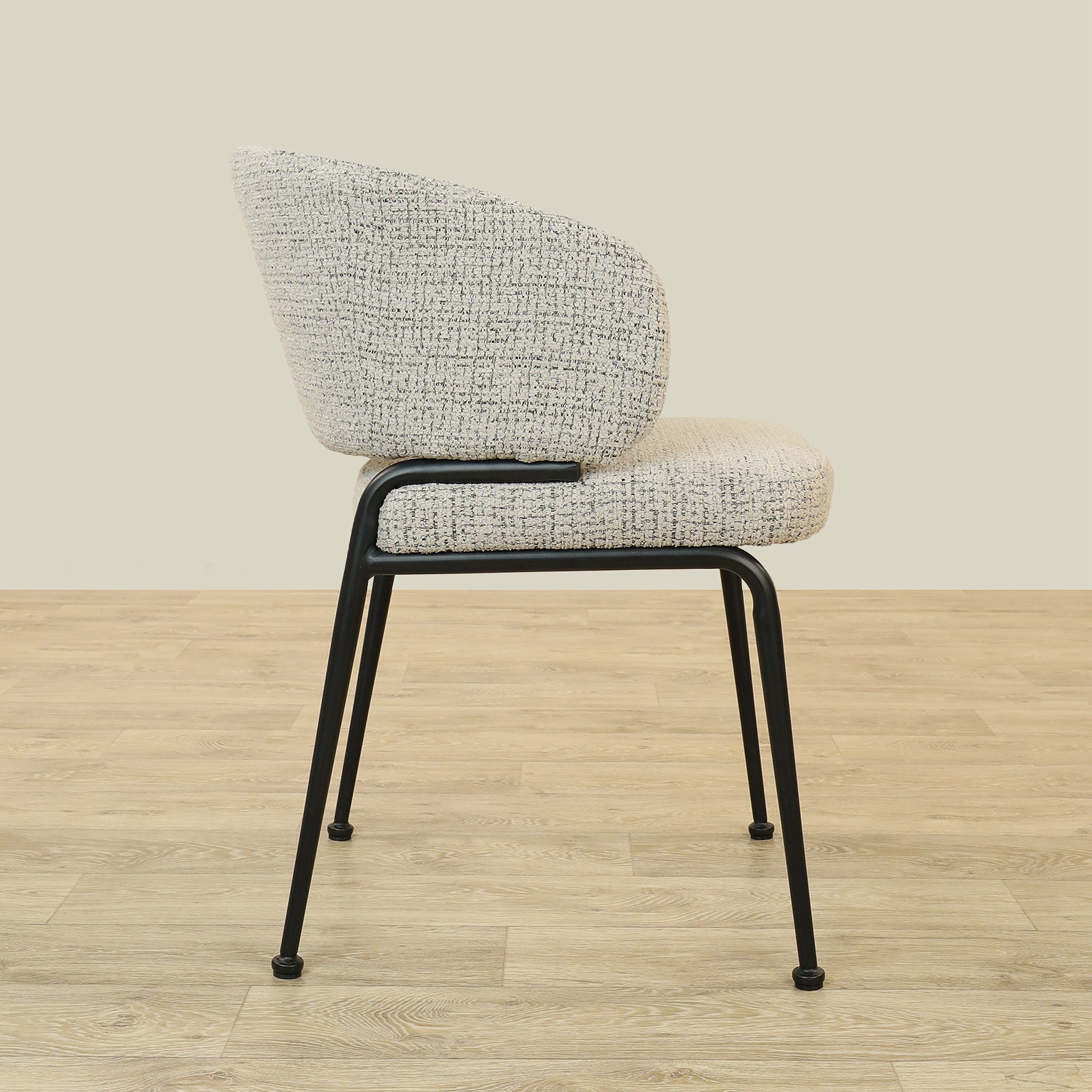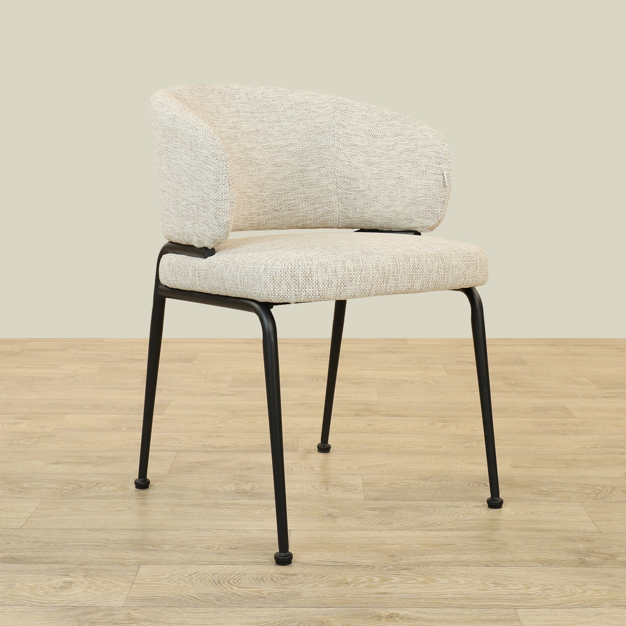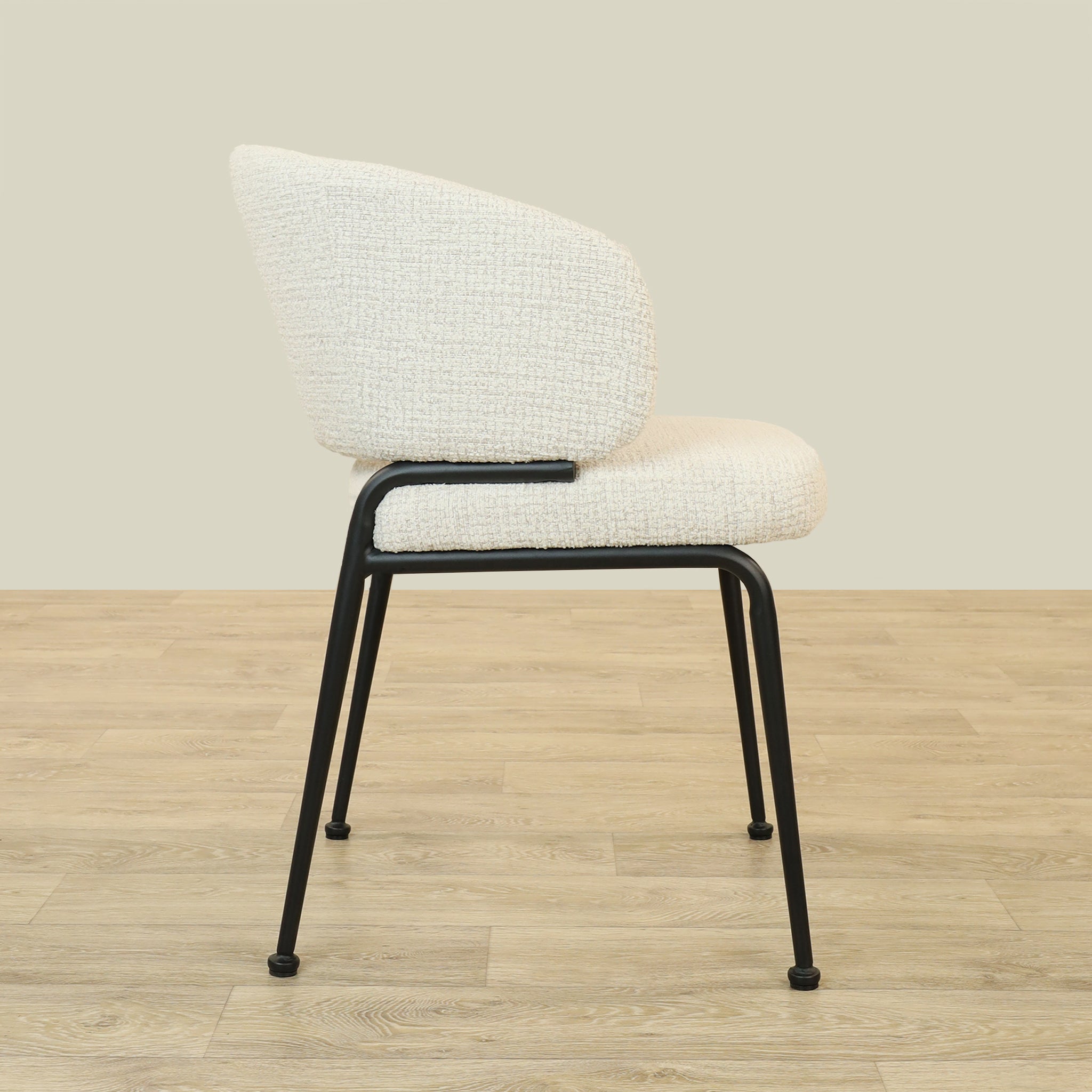 The Alder Dining Chair combines sleek plywood craftsmanship with soft fabric upholstery and a sturdy metal base, offering both comfort and durability.
