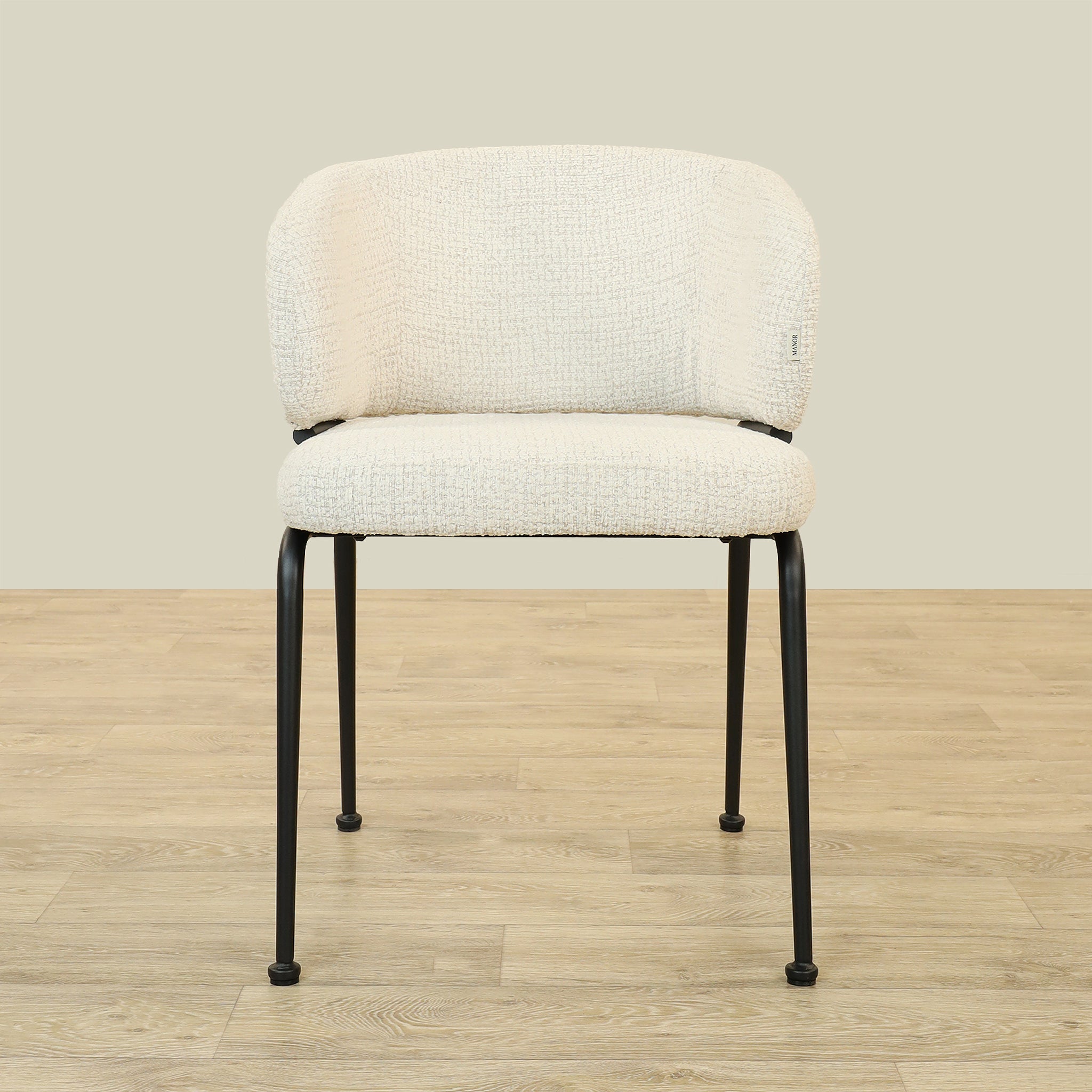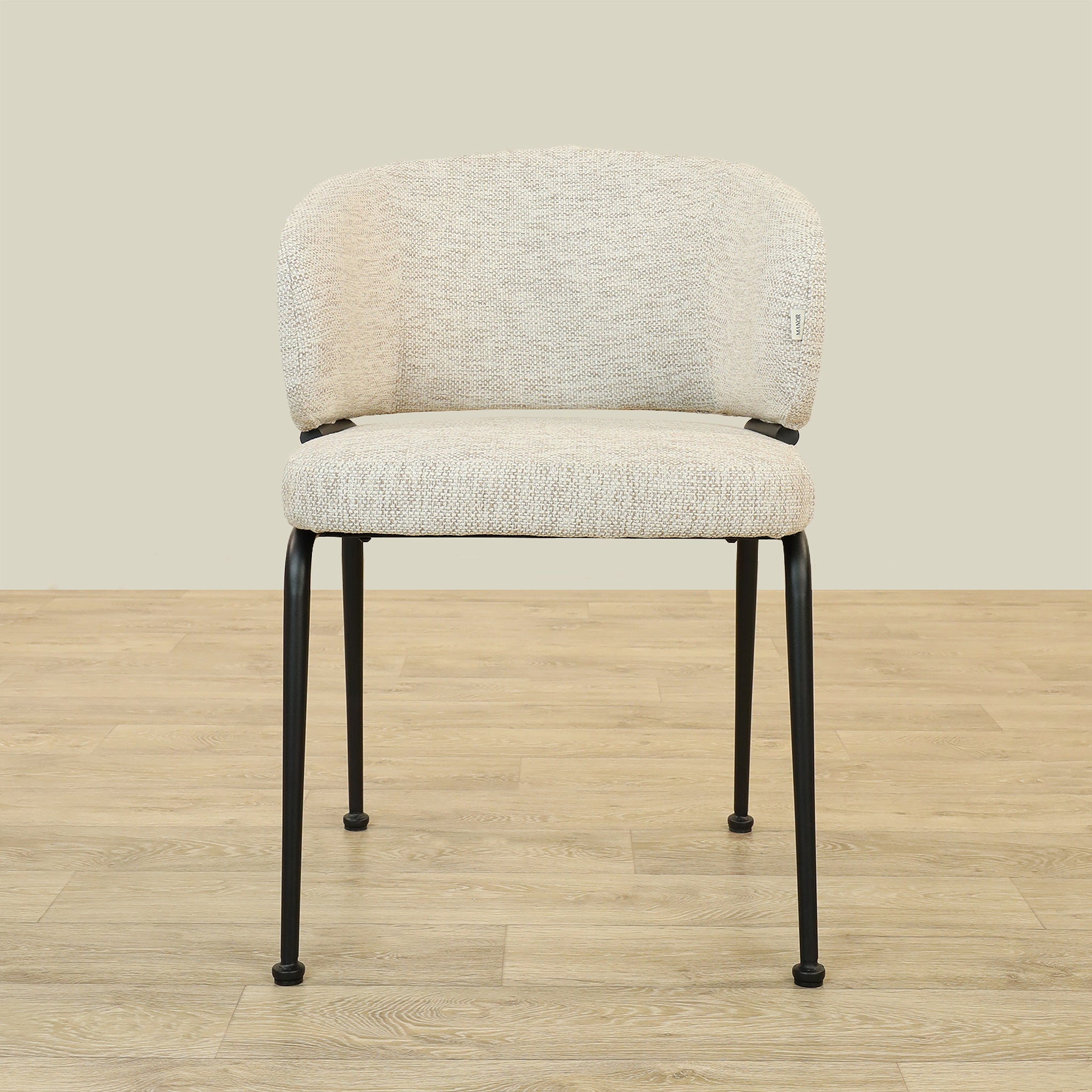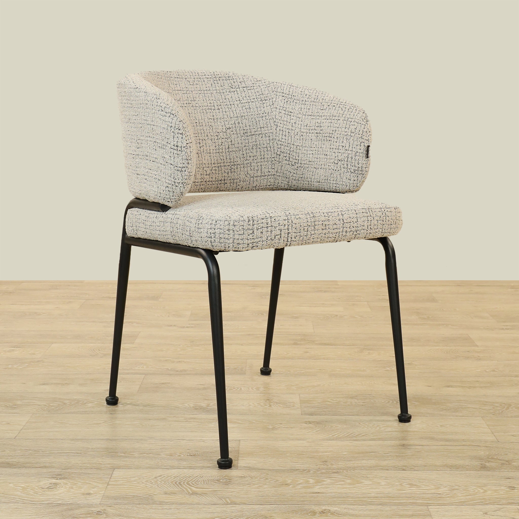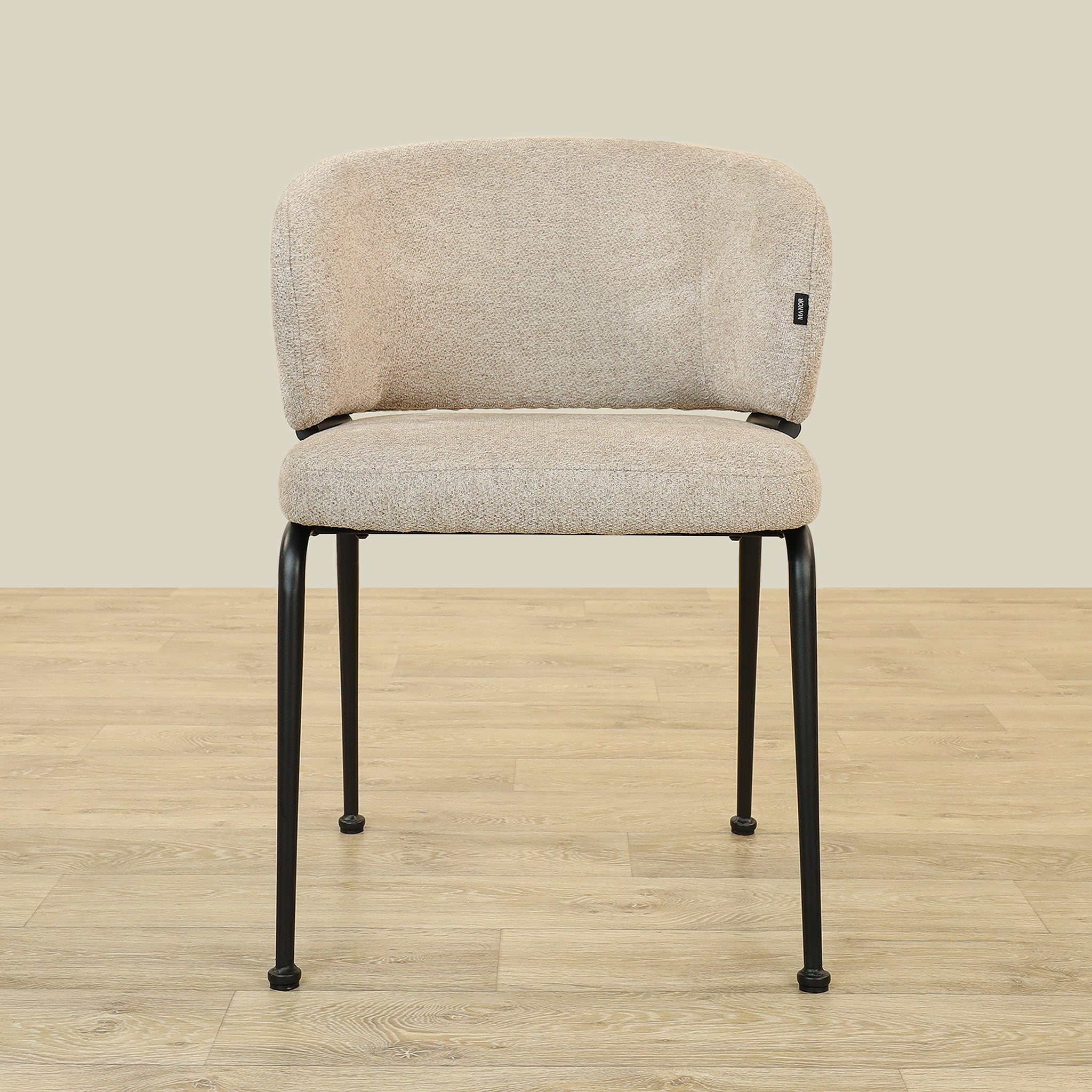 The Alder Dining Chair combines sleek plywood craftsmanship with soft fabric upholstery and a sturdy metal base, offering both comfort and durability.
