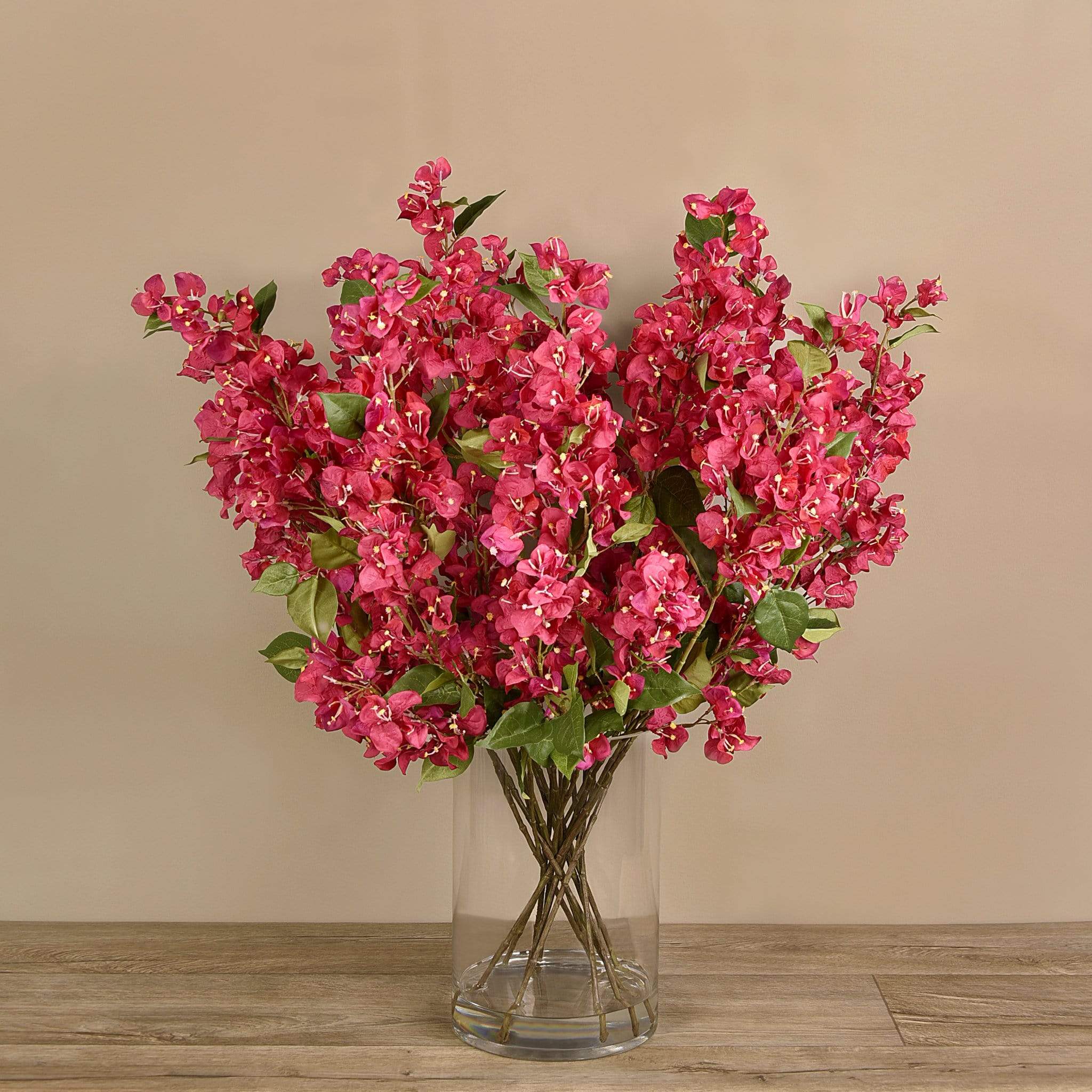 Artificial Bougainvillea in Glass Vase