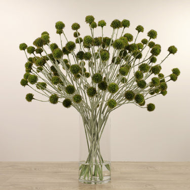 Artificial Echinops Arrangement in Glass Vase