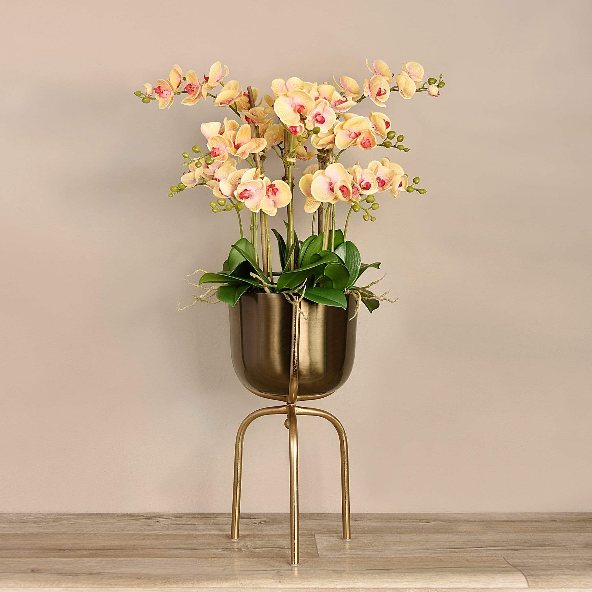 These potted artificial orchids make an elegant statement in any living space. Designed by hand by our in-house florist team, these flowers are as lifelike as they are beautiful.