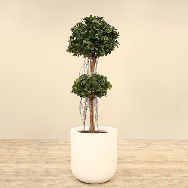 Infuse any space with natural beauty when you bring our artificial Panda Ficus Tree into your home. It features a double round shape, hanging vines, and wonderfully detailed leaves for a very realistic look sure to bring a fresh touch to any decorating style. This tall tree arrives fully assembled – simply arrange the branches, place it in a pot of your choosing, and decorate your room.