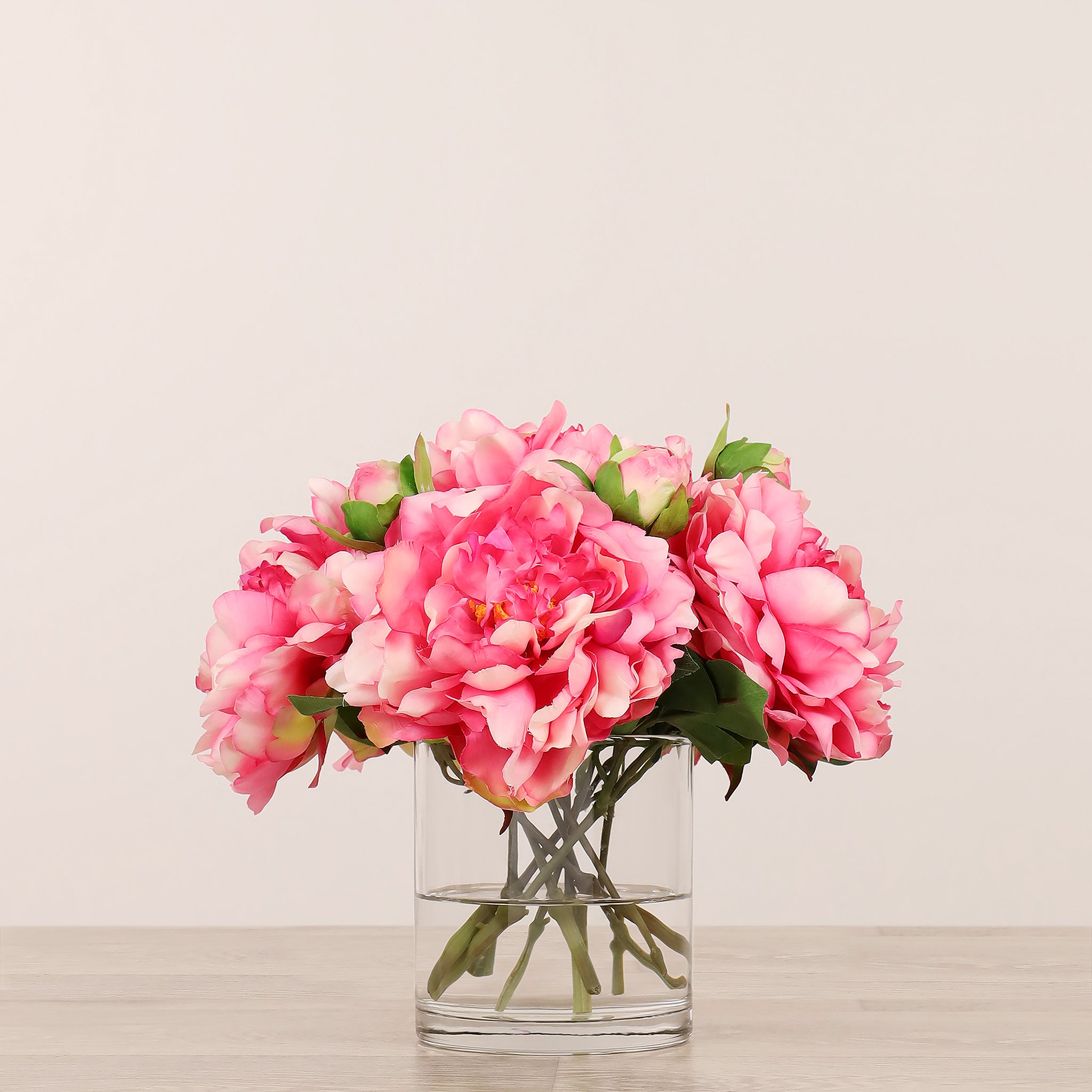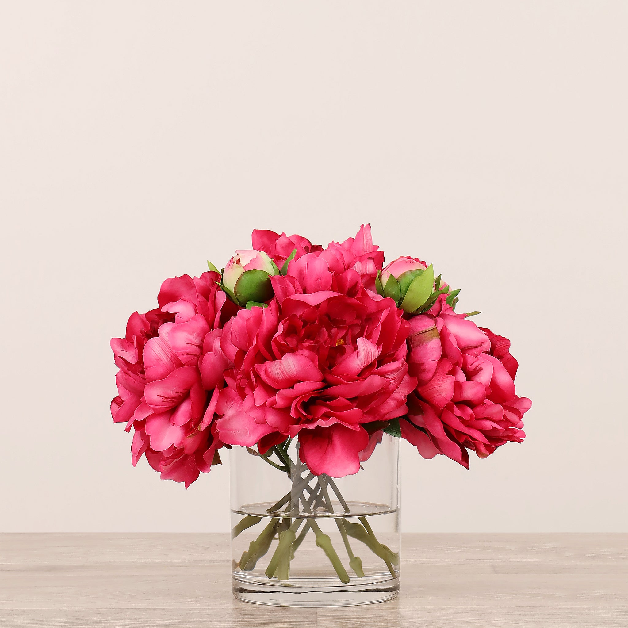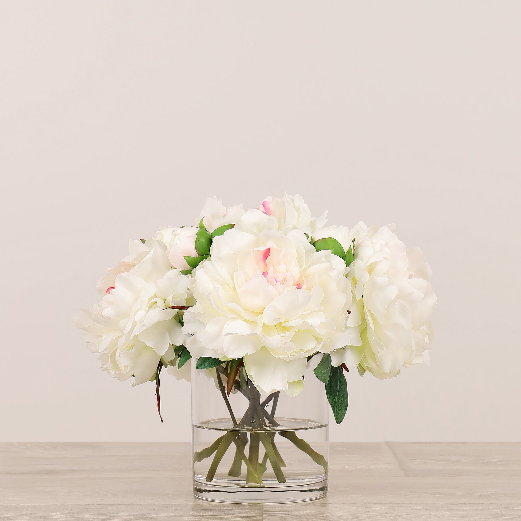 Artificial Peony Arrangement in Glass Vase
