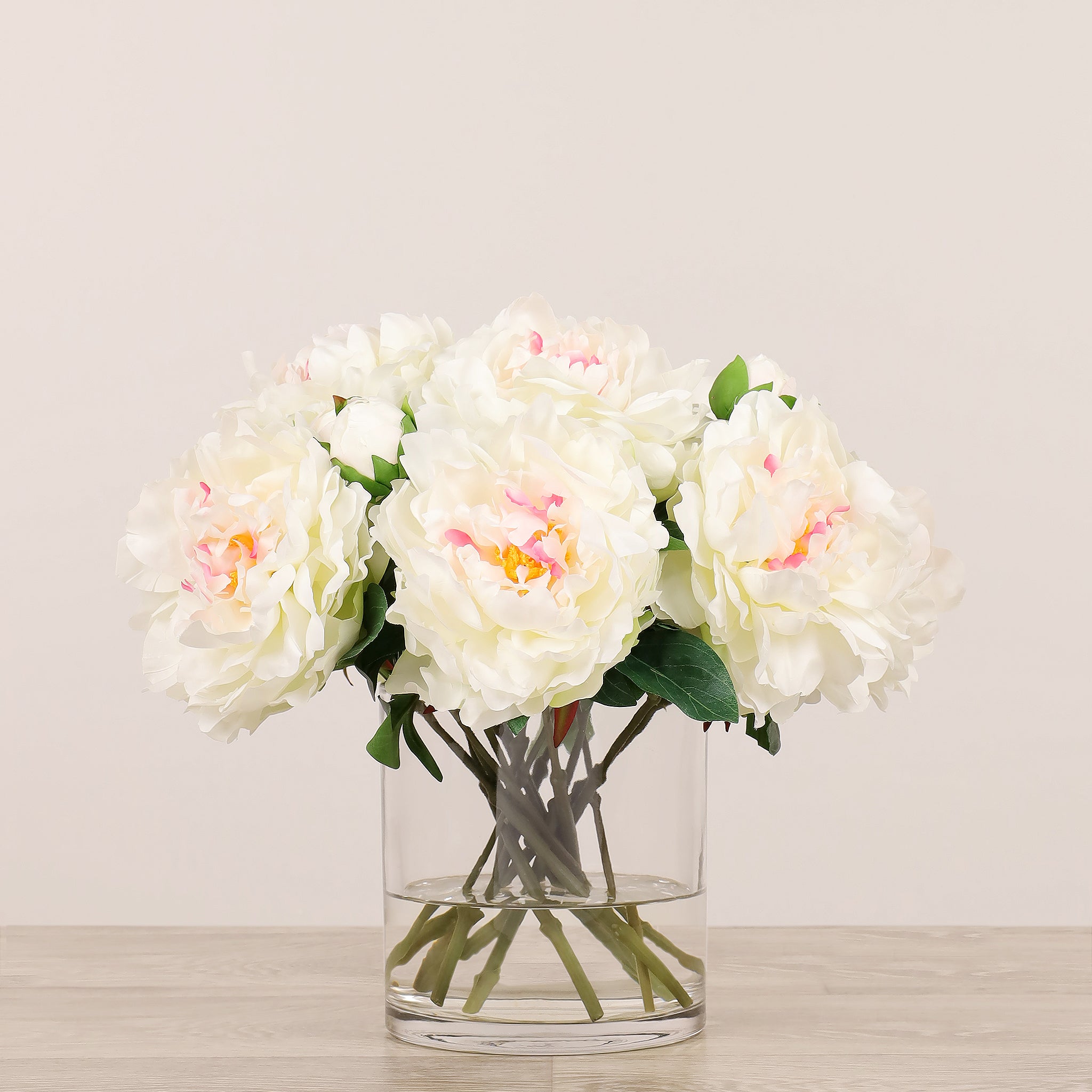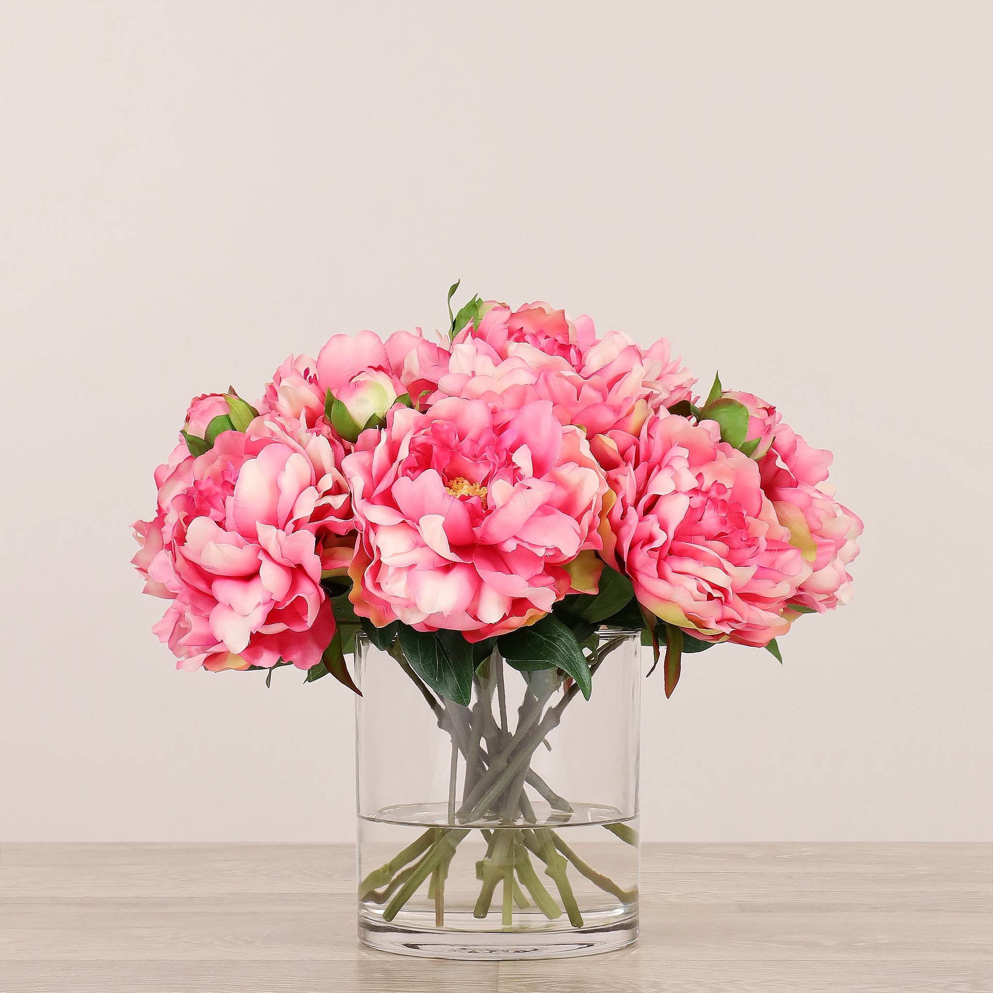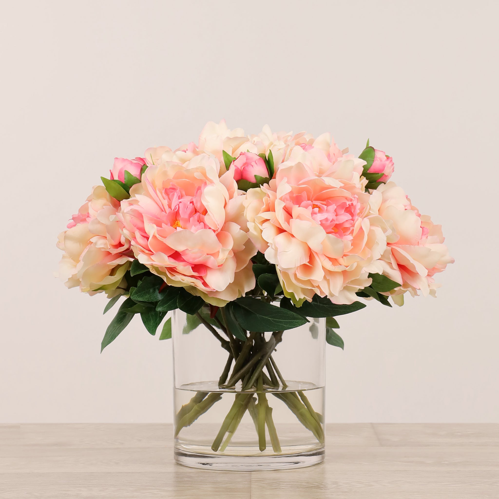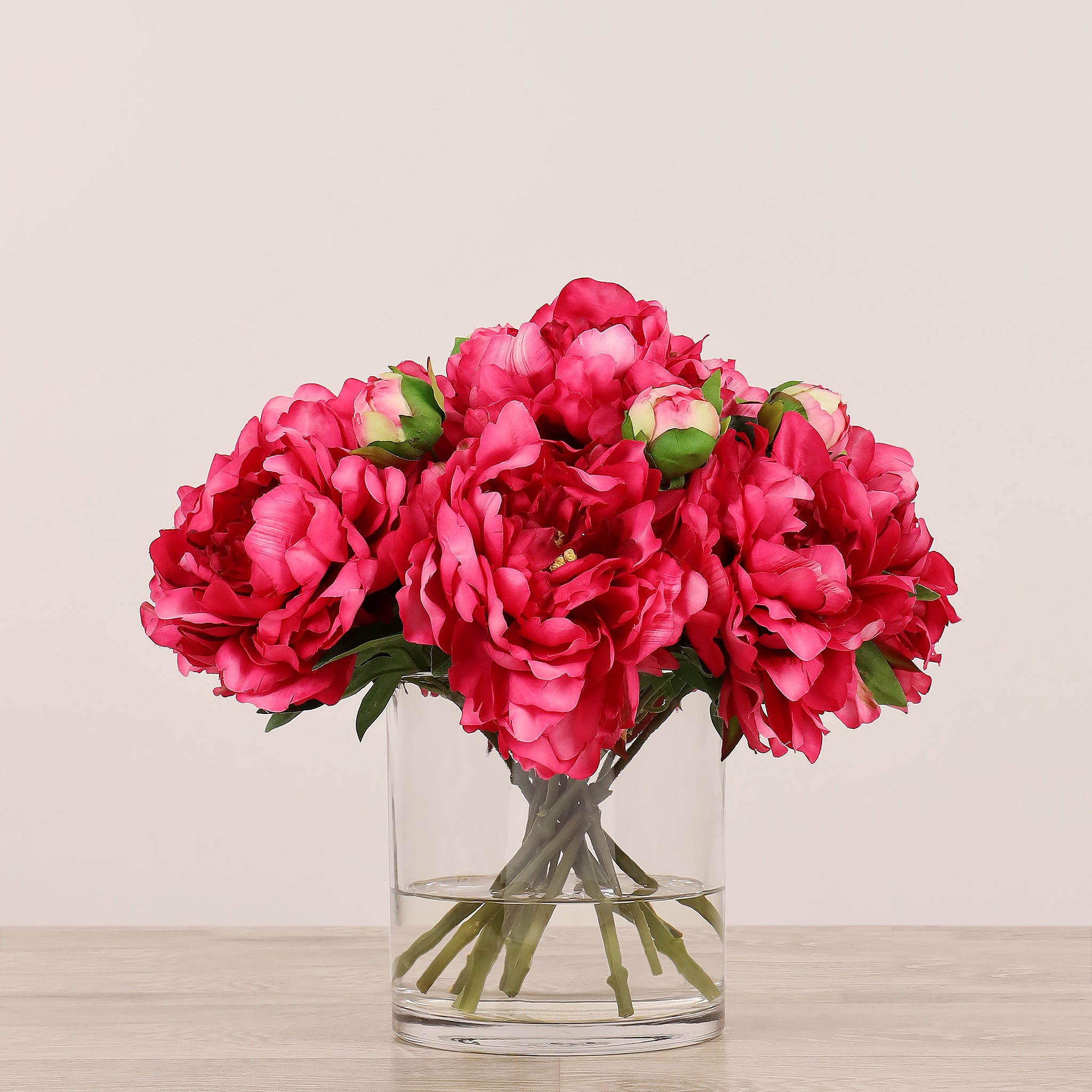 Artificial Peony Arrangement in Glass Vase