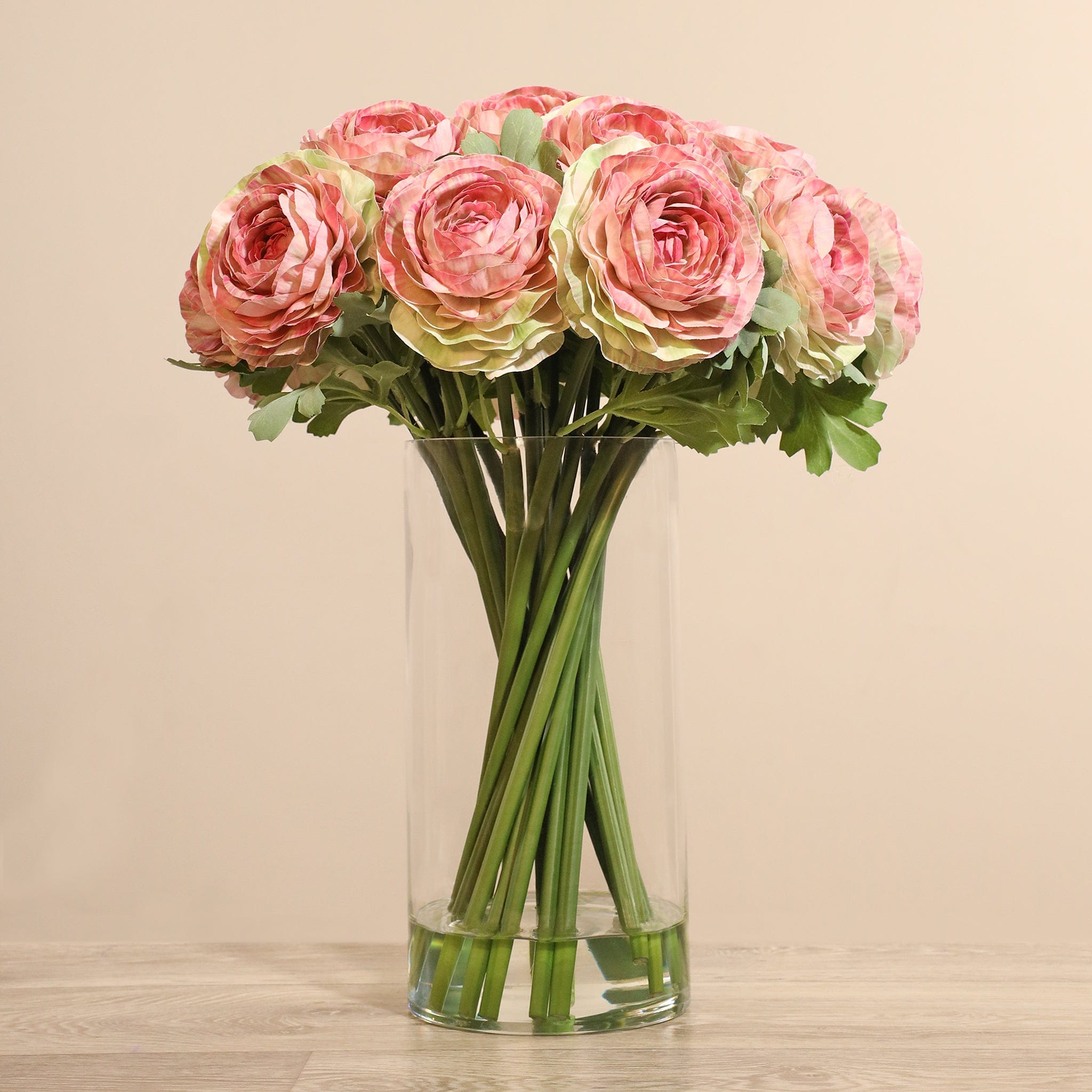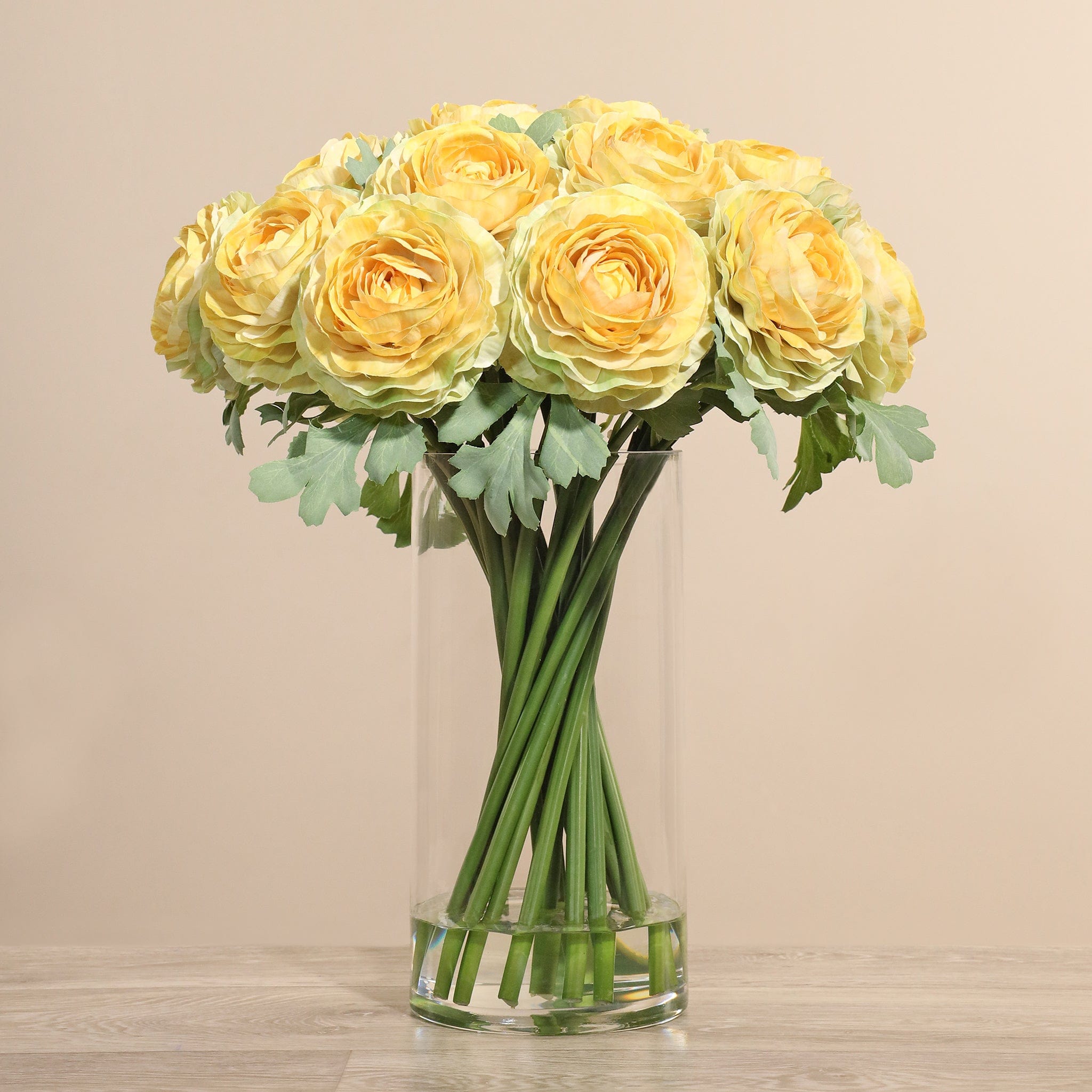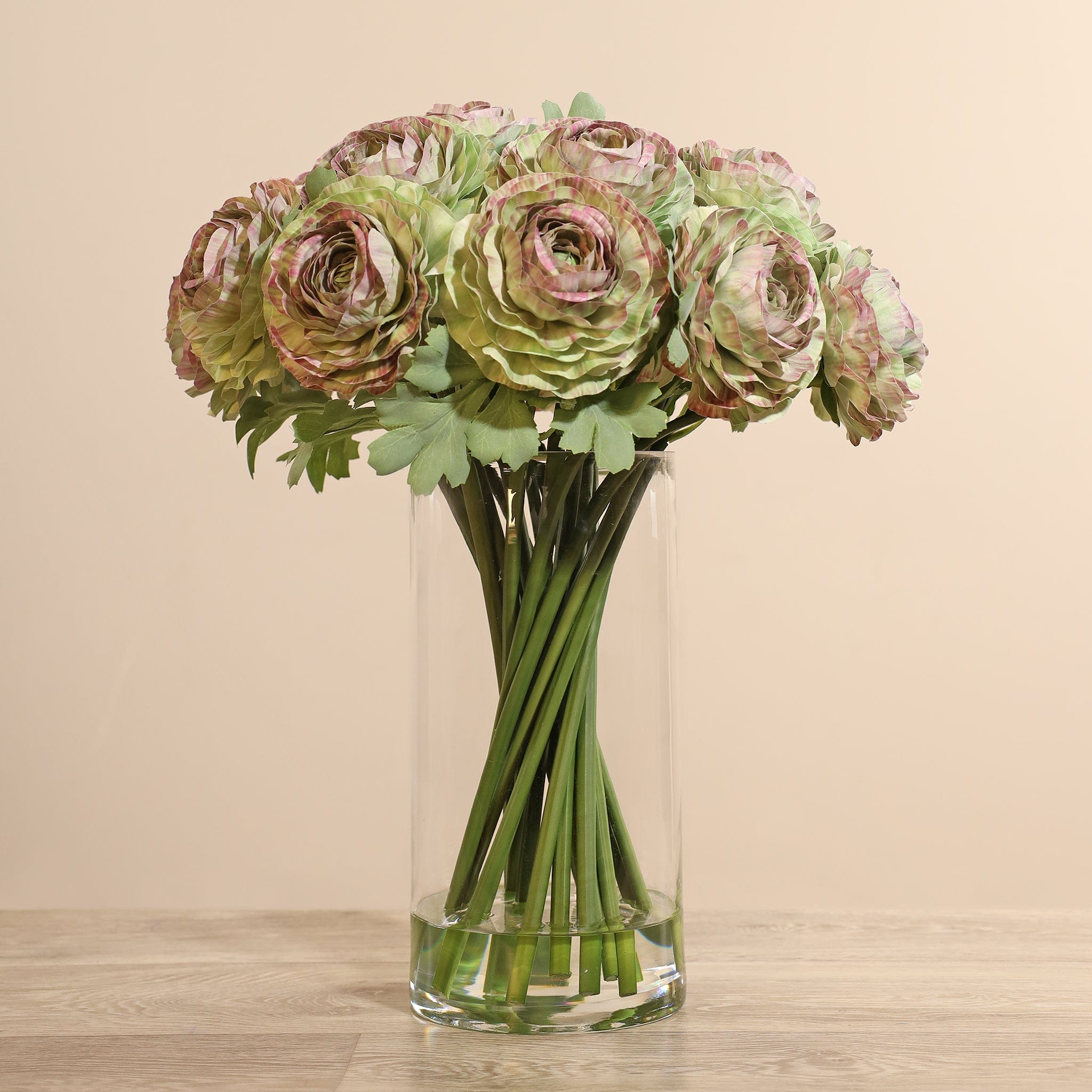 Artificial Ranunculus Arrangement in Glass Vase