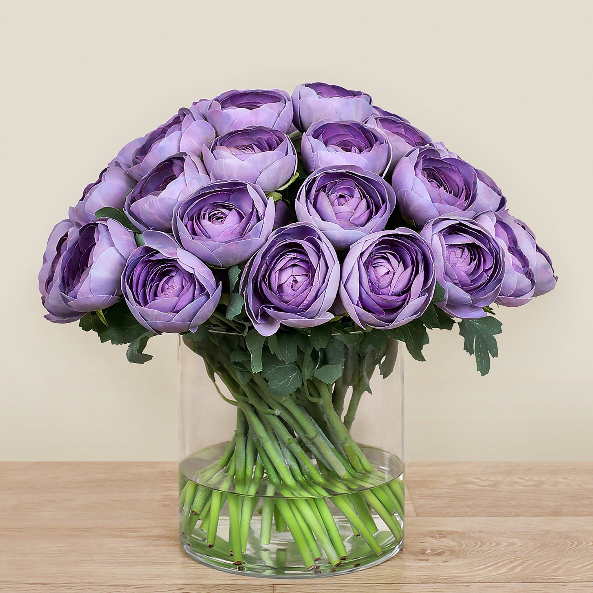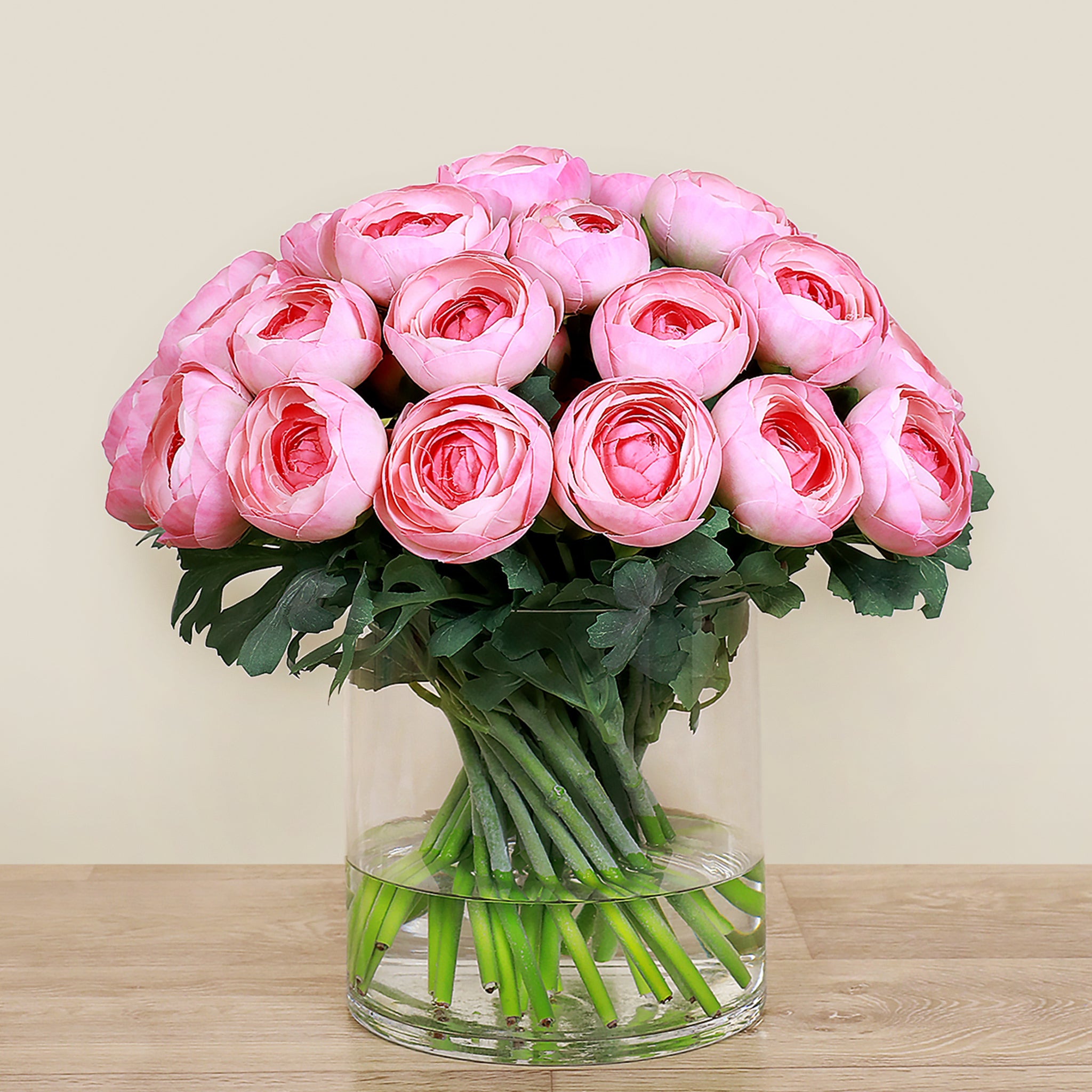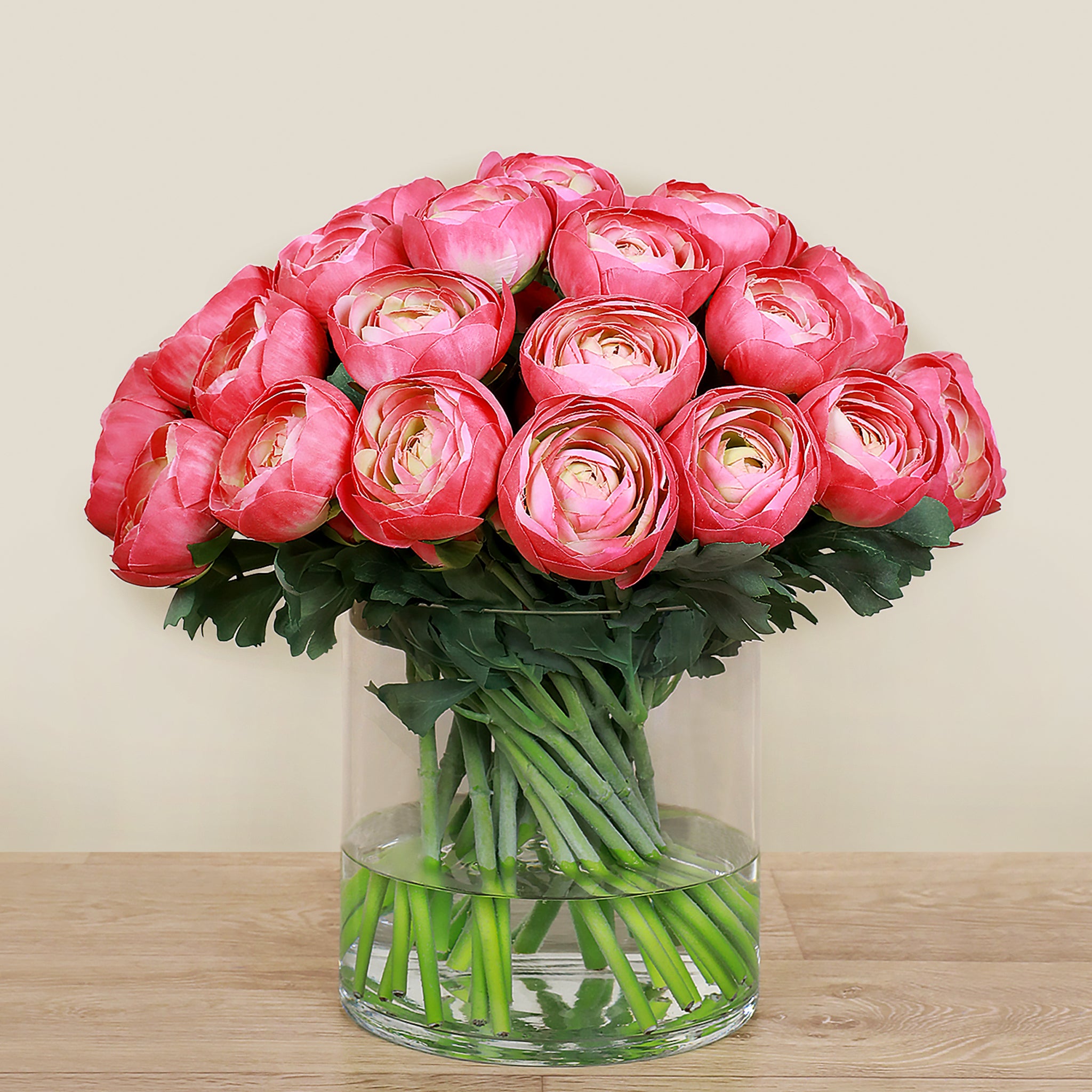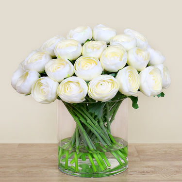 Artificial Ranunculus Arrangement in Glass Vase