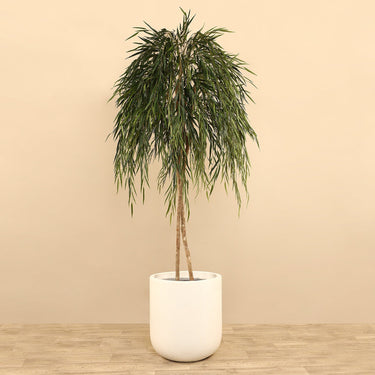 Charm your guests and visitors with the mesmerizing allure of this artificial Willow Tree. Its breathtaking canopy consists of delicate branches, adorned with lifelike leaves in green hues. Anchored by a textured trunk, this tree effortlessly transforms any space into a stunning oasis, all without the need for regular maintenance. This tree comes fully assembled – simply bend out the branches, place it in a pot, and decorate your room.