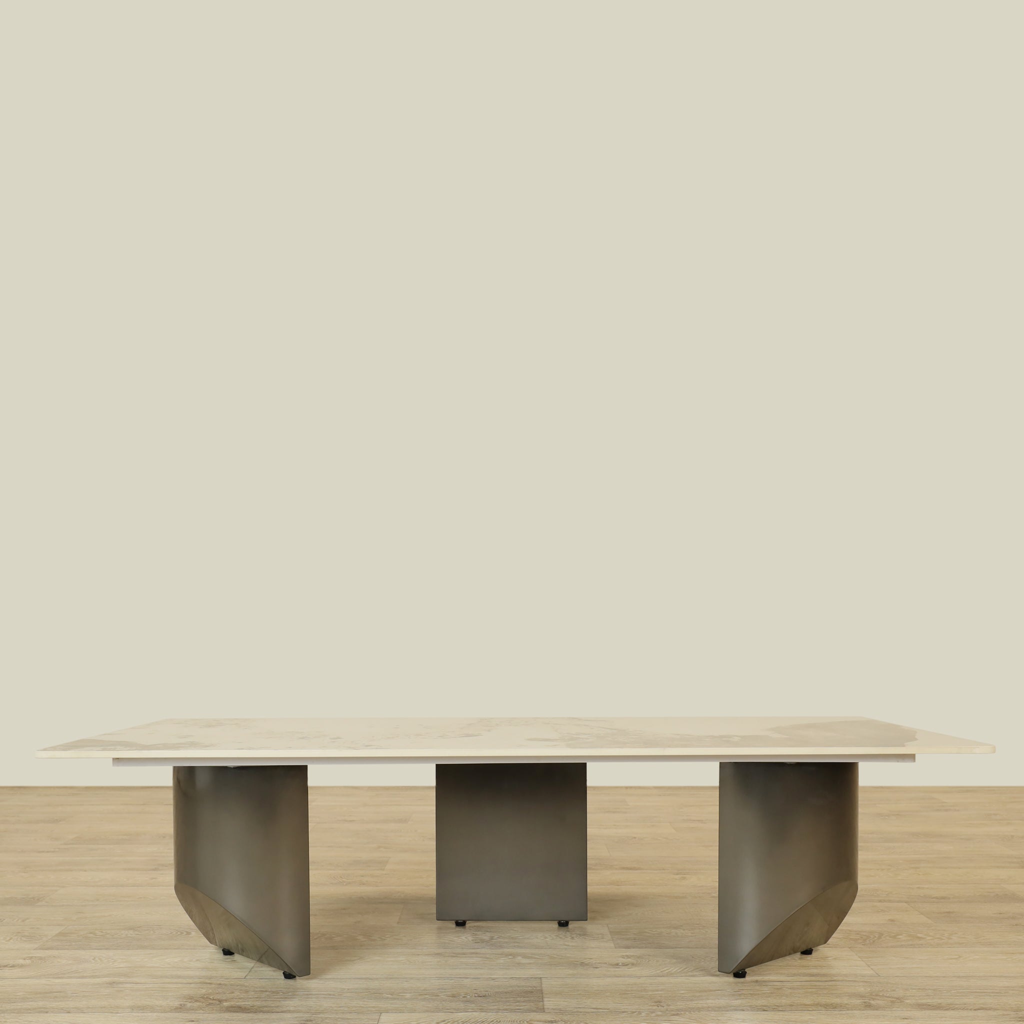 Enjoy a sleek, modern look with this sintered stone-top coffee table. Three gracefully curved legs support the texturally interesting top to make this coffee table an easy choice for a contemporary living space.