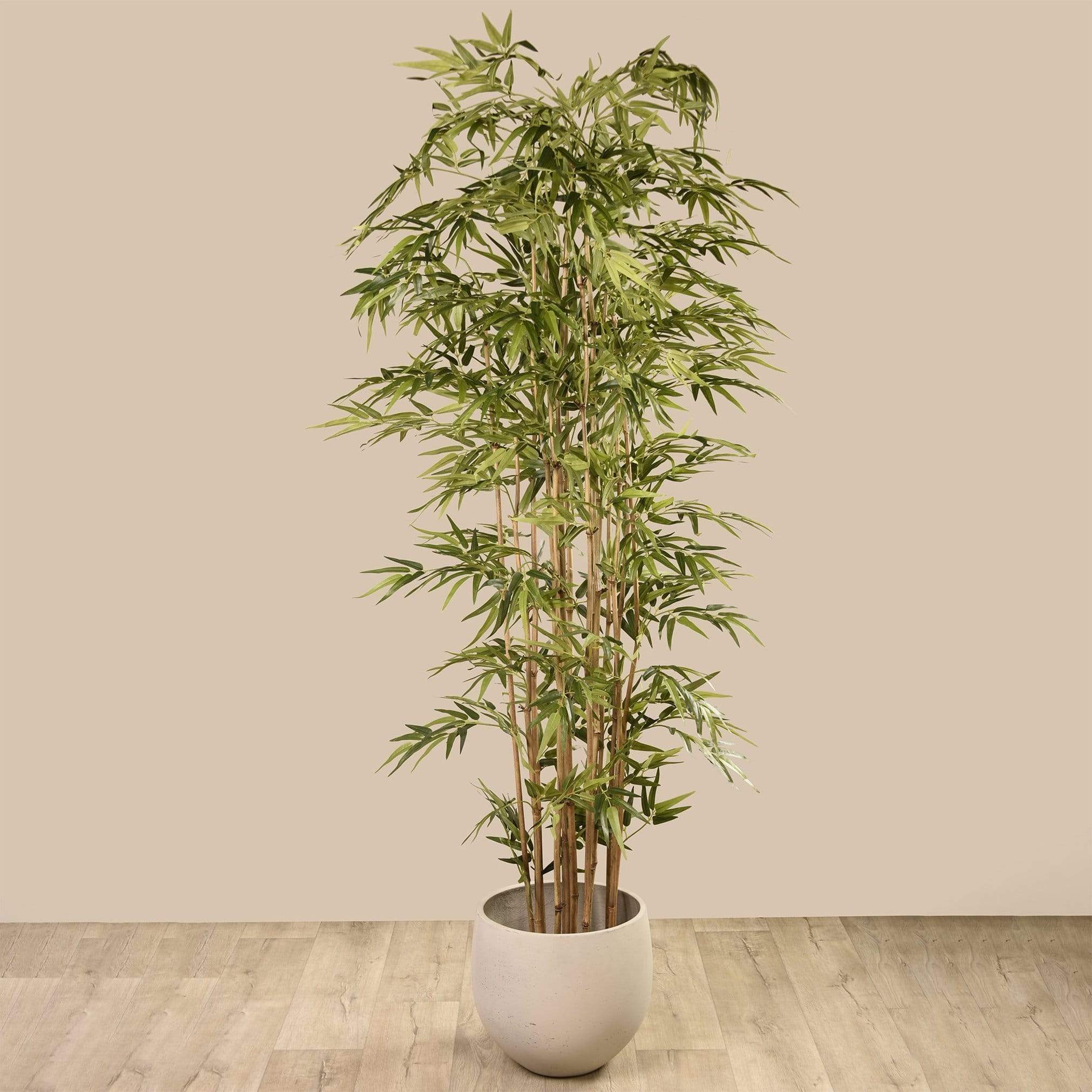 This Artificial Bamboo Tree will bring a warm, tropical air to your home. It seamlessly fills open space without dominating an entire room. So bring out some chilled coconut water, prop up your feet, and enjoy the view of this gorgeous faux tree. This bamboo tree comes fully assembled – just bend out the branches and place in a concrete pot to complete the look.