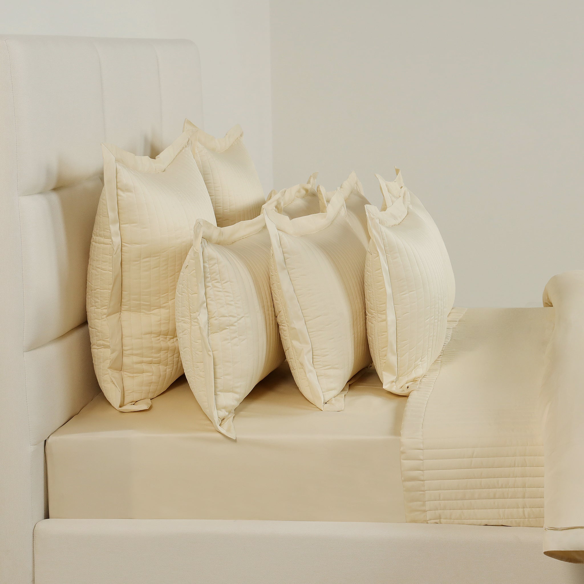 Transform your bedroom sanctuary with this exquisite channel stitch bedding set. Crafted from a delightful cotton sateen fabric, this set offers breathability and comfort. Adorned with a channel-stitched pattern, this set will create a soft and inviting textured appeal for a bed.