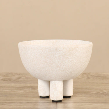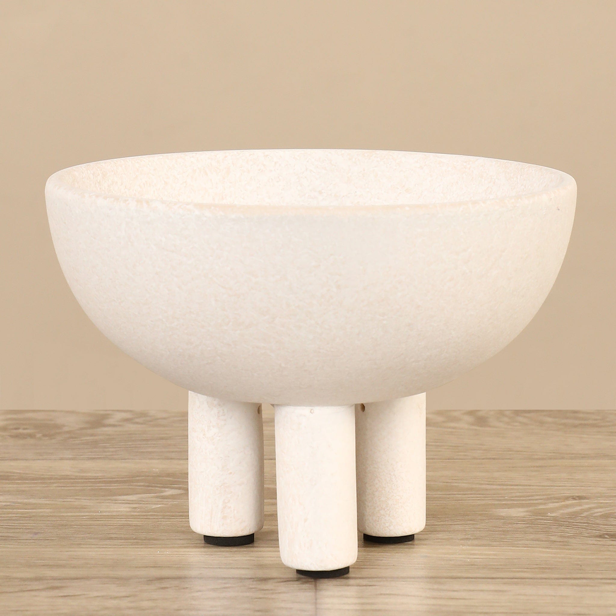 This ceramic bowl exudes a rustic and simplistic charm, elevated gracefully on three pedestal legs, adding both style and intrigue to its design. Whether showcased on its own or incorporated into an arrangement, this unassuming bowl effortlessly infuses any space with a touch of understated elegance.
