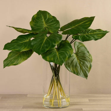 Artificial Canna Leaf Arrangement in Glass Vase