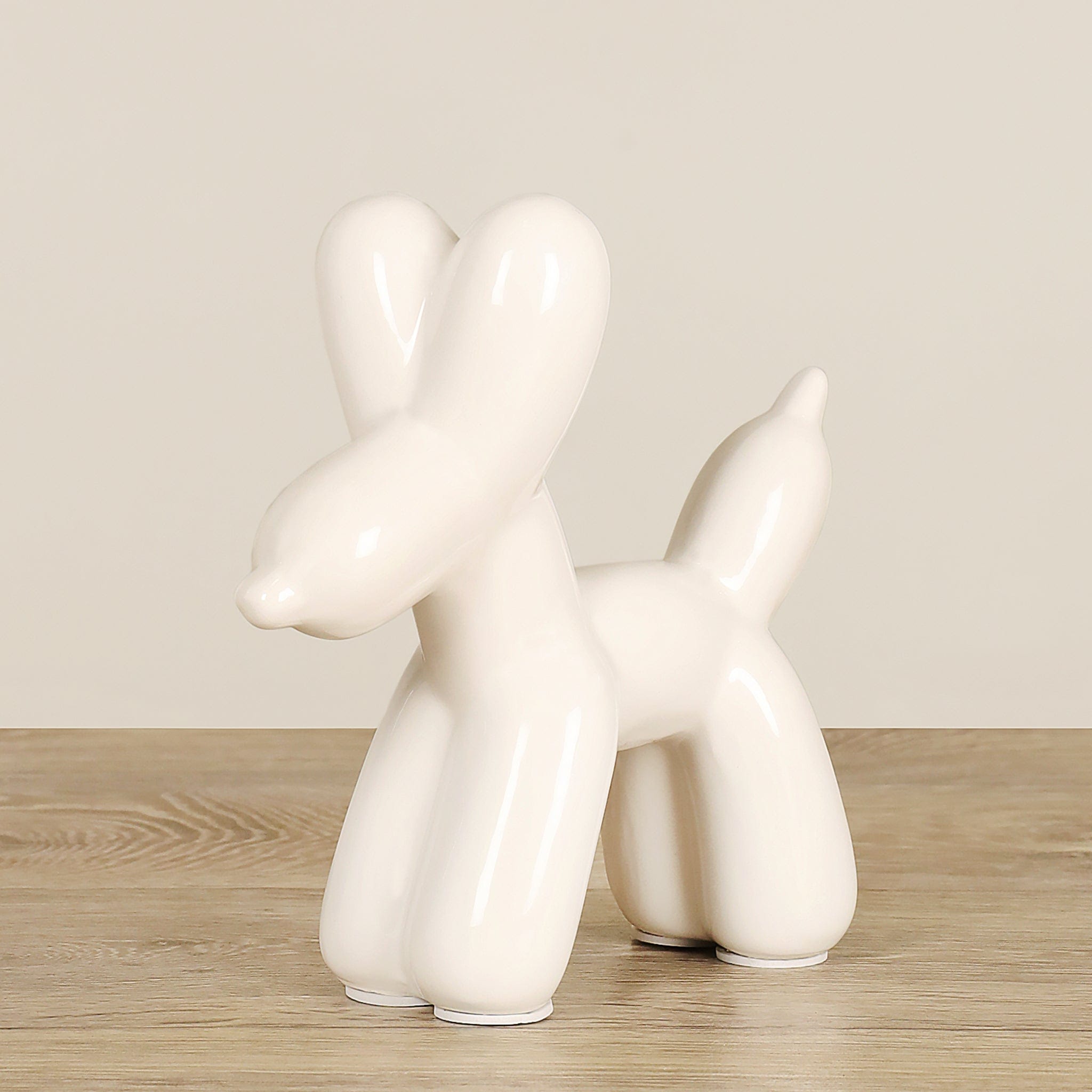 Infuse your shelves and tabletops with a touch of modern decor using this ceramic balloon dog figurine. Meticulously crafted from ceramic, this charming piece has the unique power to imbue its surroundings with a delightful sense of joy. Whether showcased on shelves or employed as whimsical office adornment, this ceramic piece radiates with a playful charm.