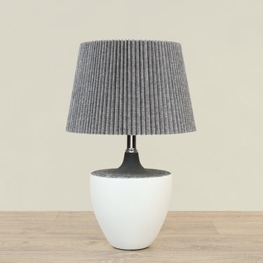 The sophisticated grey ceramic body transitions elegantly to a pristine white base, creating a versatile lighting solution that complements both contemporary and traditional décor.