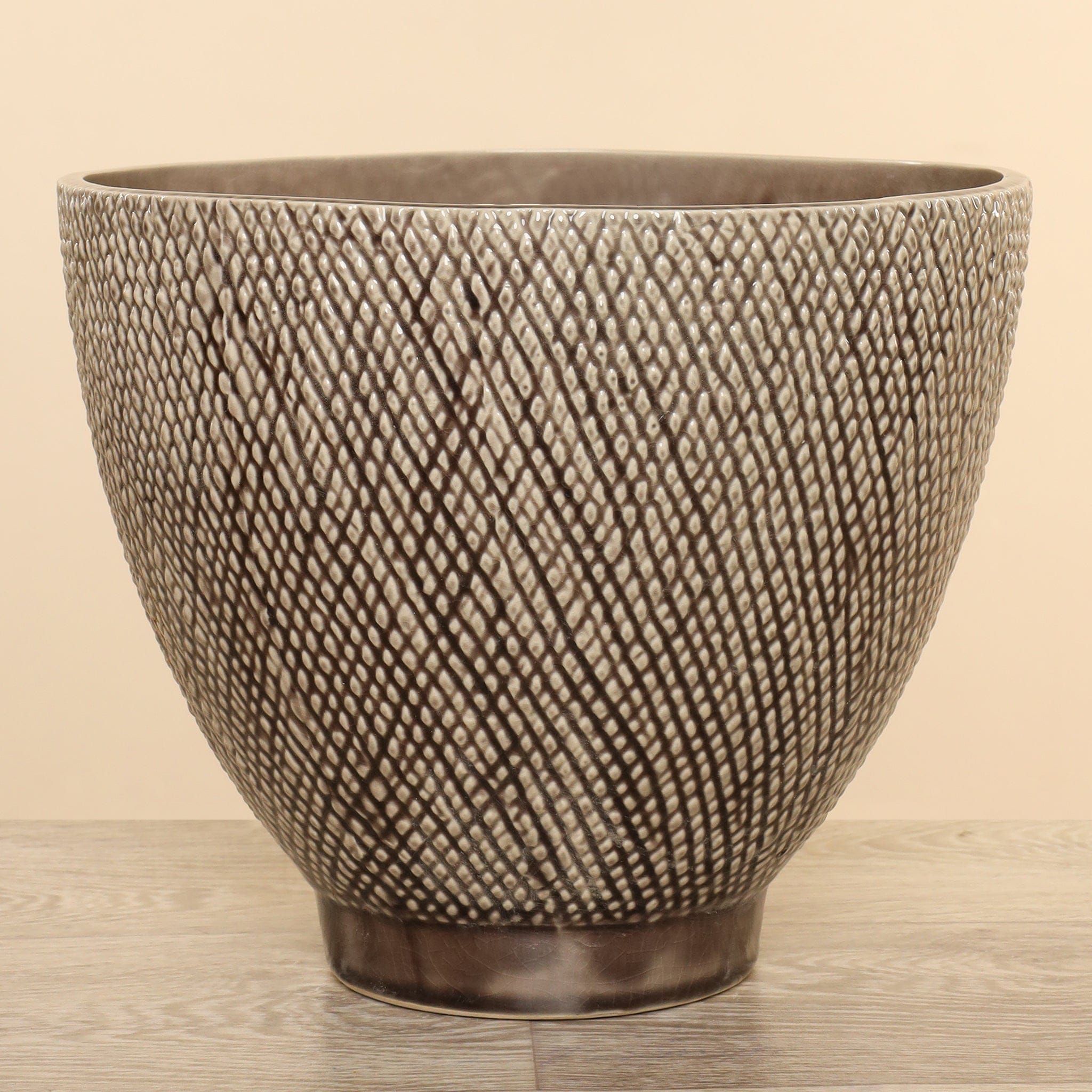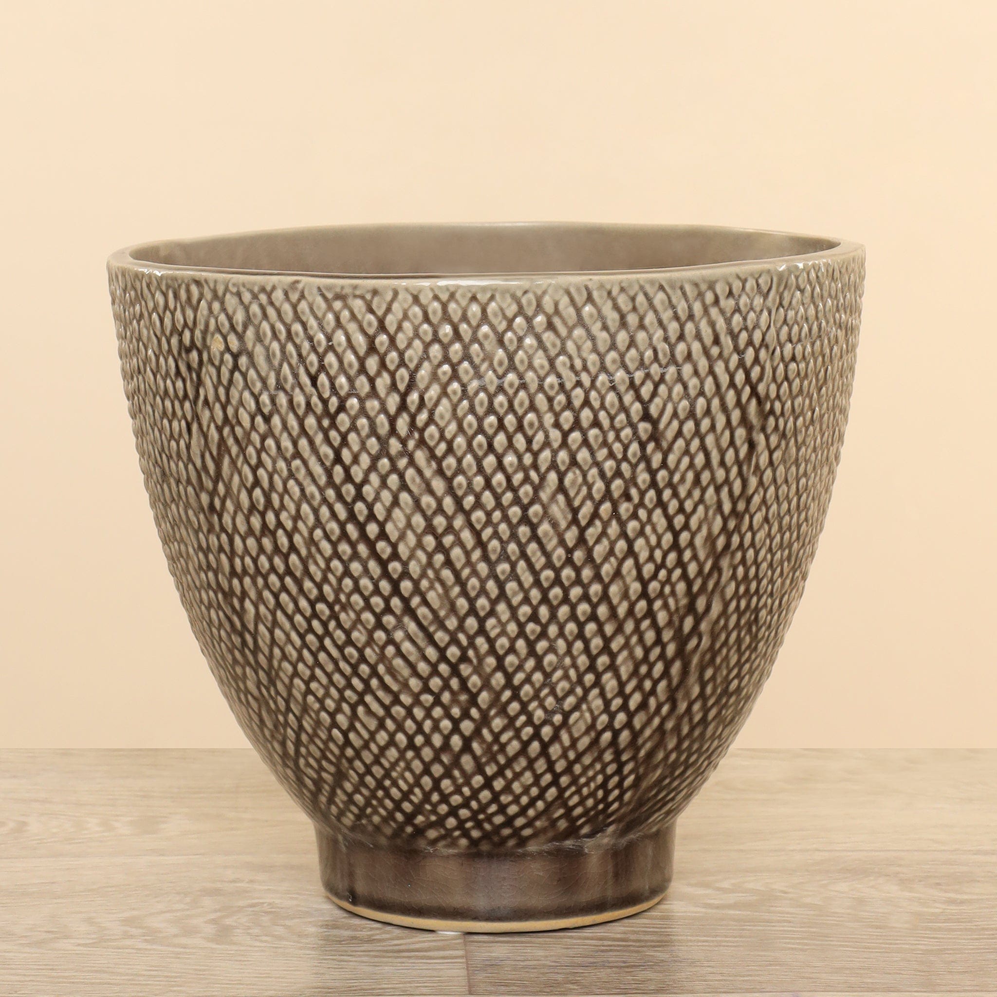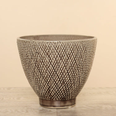 Our Round Ceramic Pot is a beautiful pot that will bring a touch of natural charm to any setting. Terrific for housing artificial trees or plants, this versatile ceramic pot adds elegance to both indoor and outdoor spaces. Its sturdy construction and finish provide a timeless appeal making it an ideal choice for patios, living rooms, or garden areas.