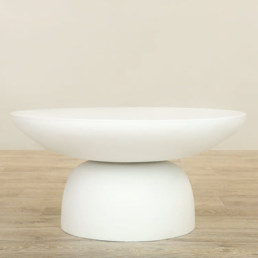 A two-piece concrete form makes this coffee table an excellent choice for a contemporary space. Designed in durable concrete this minimalist coffee table can be used indoors or outdoors to finish off a seating area with elegance.
