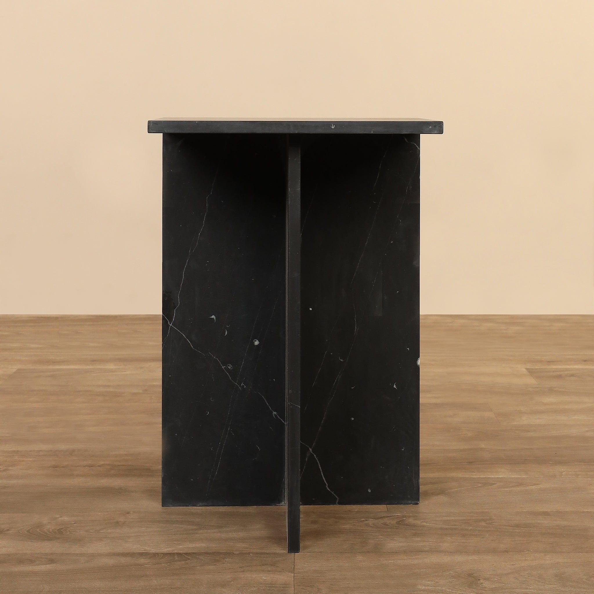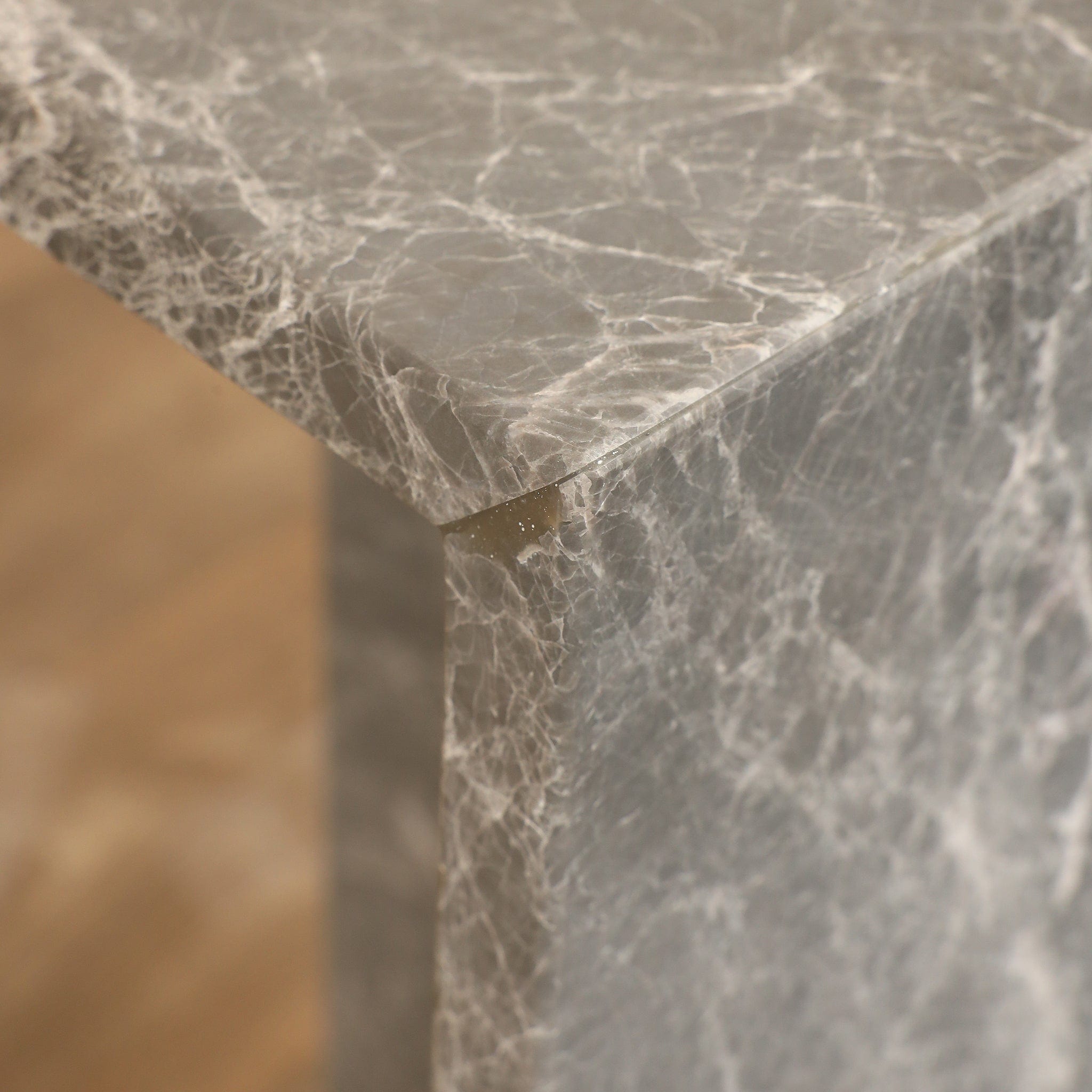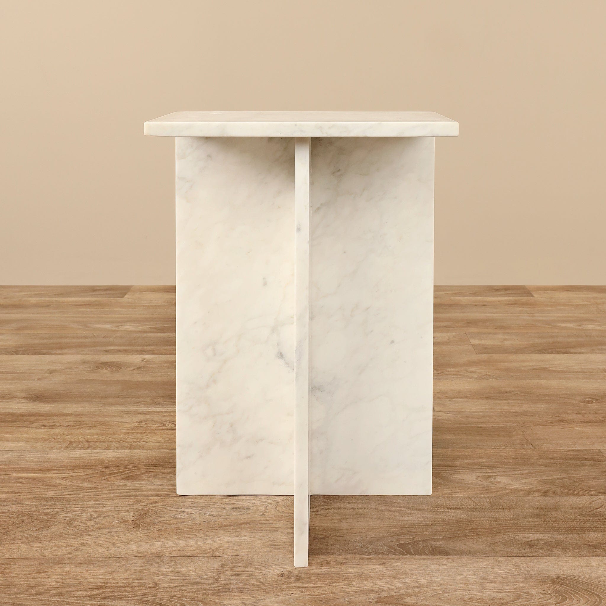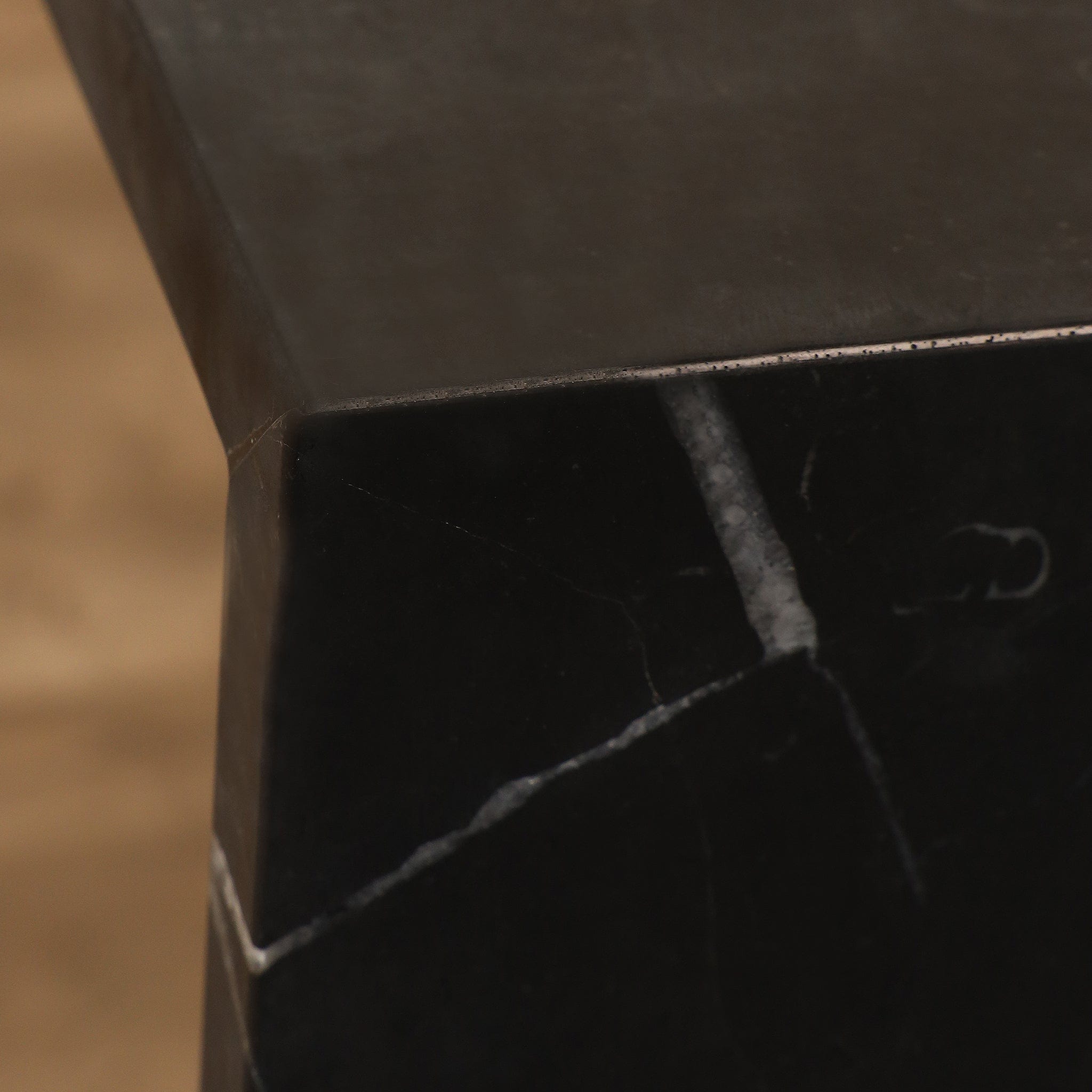 Varying heights in natural marble make the Cordelia side table an excellent choice for a contemporary aesthetic. The rich, veined marble is a wonderful material for a sleek yet functional side table to lend a statement-making look to a room.