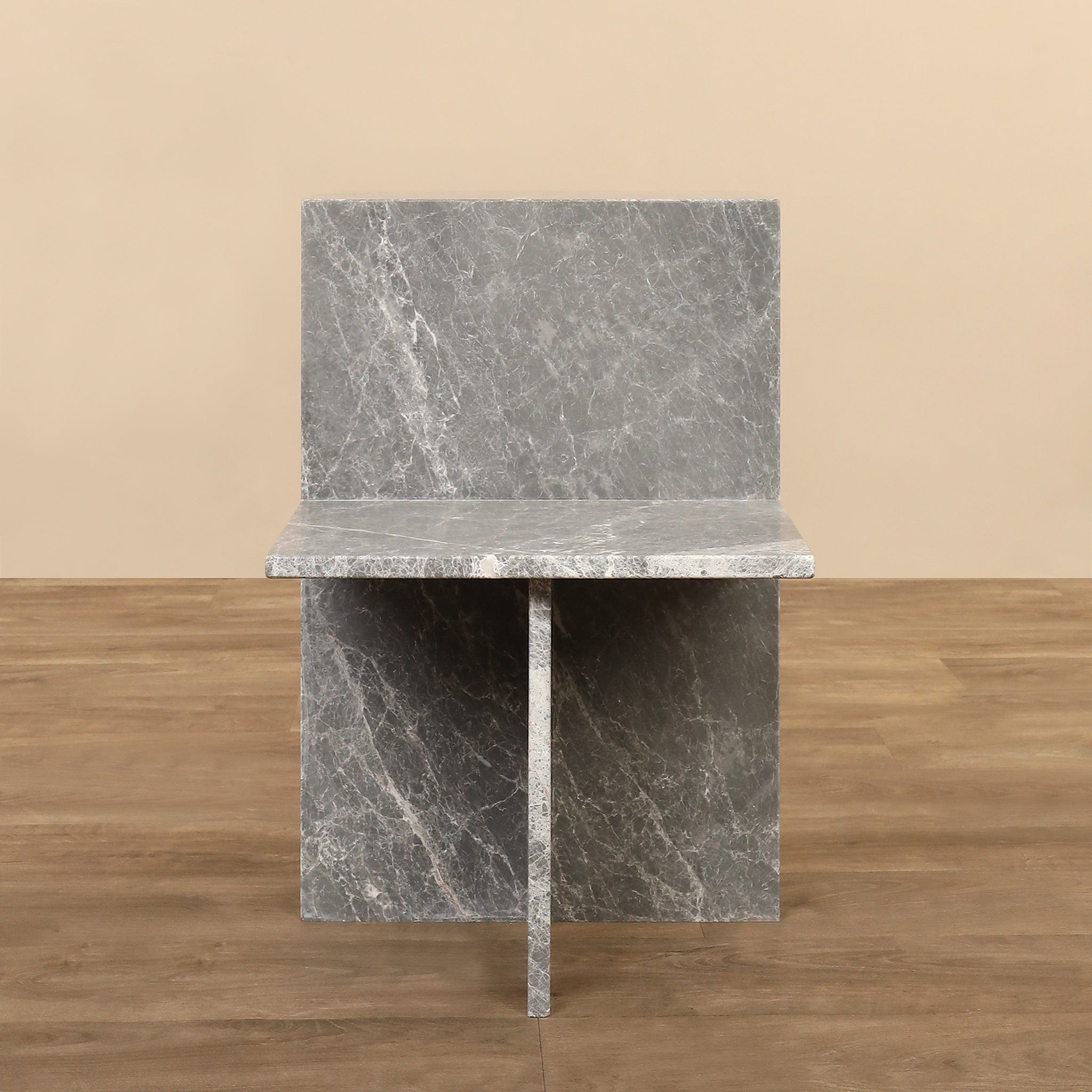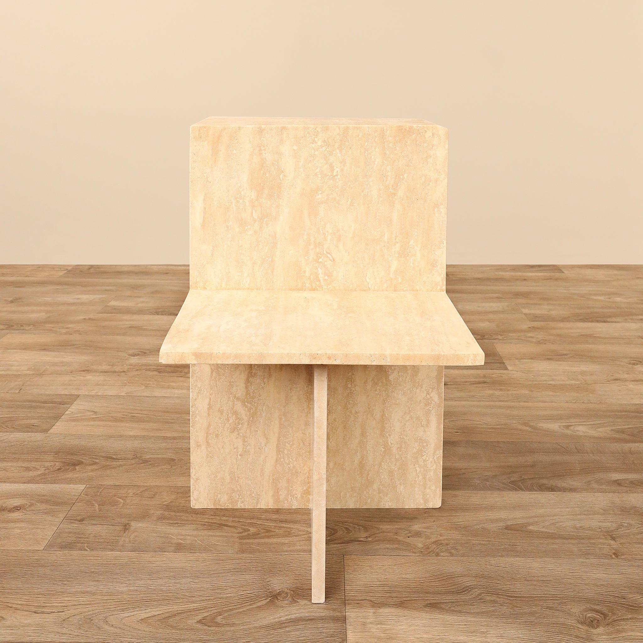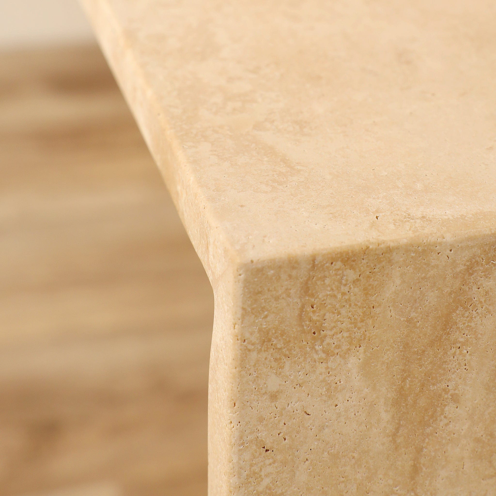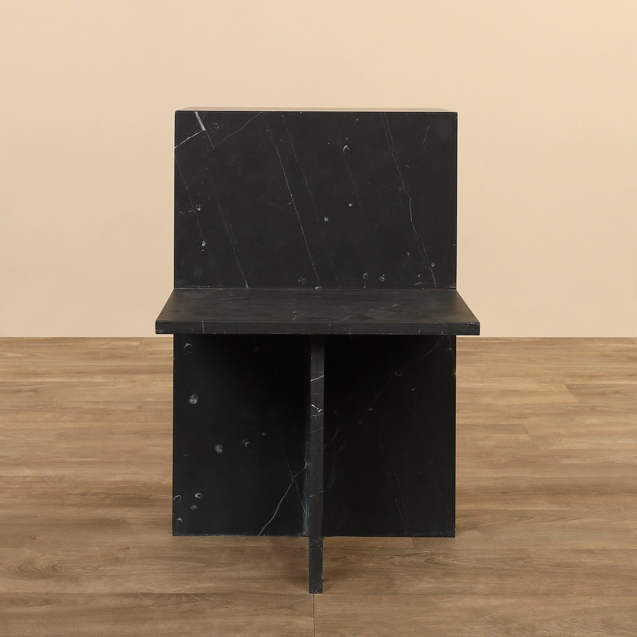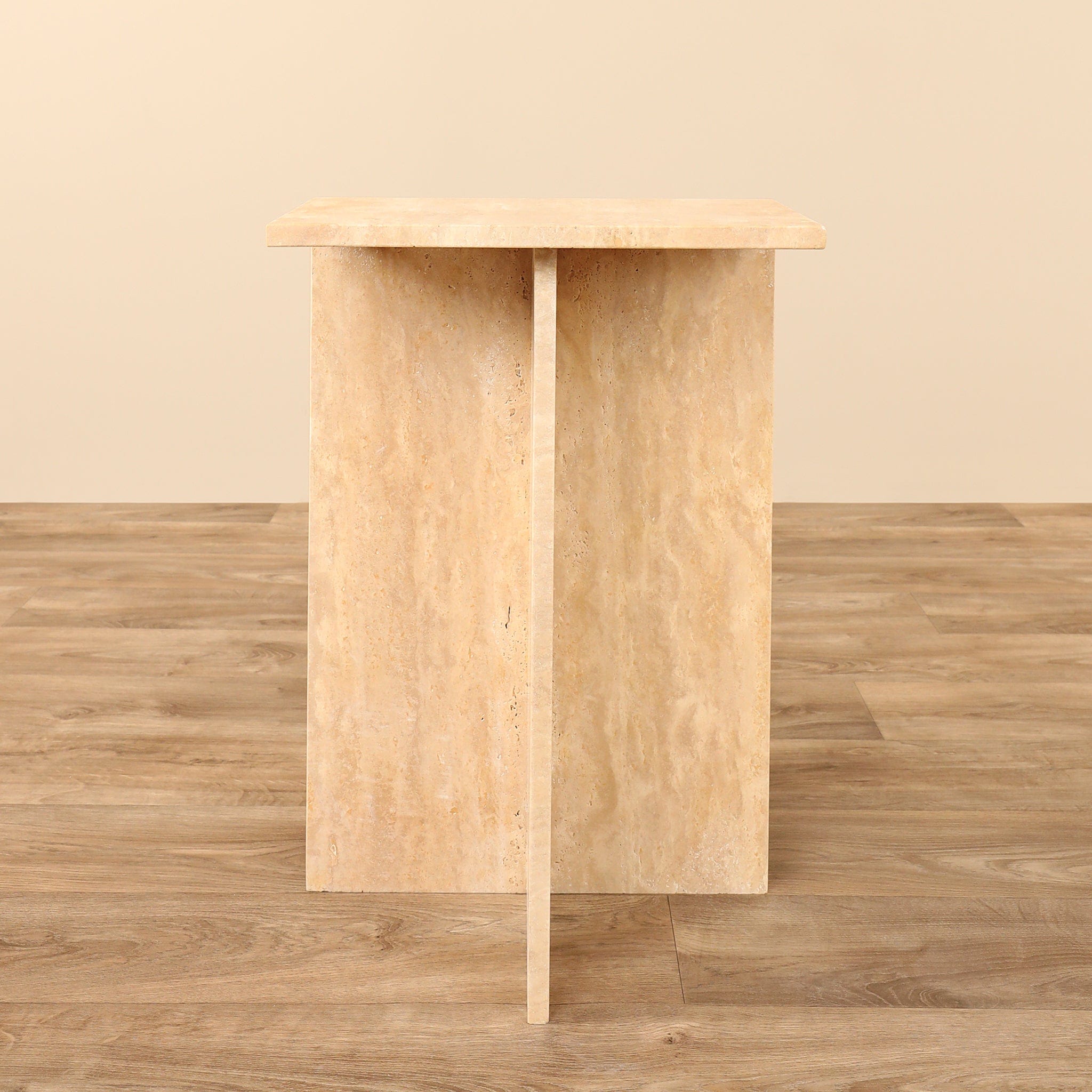 Varying heights in natural marble make the Cordelia side table an excellent choice for a contemporary aesthetic. The rich, veined marble is a wonderful material for a sleek yet functional side table to lend a statement-making look to a room.