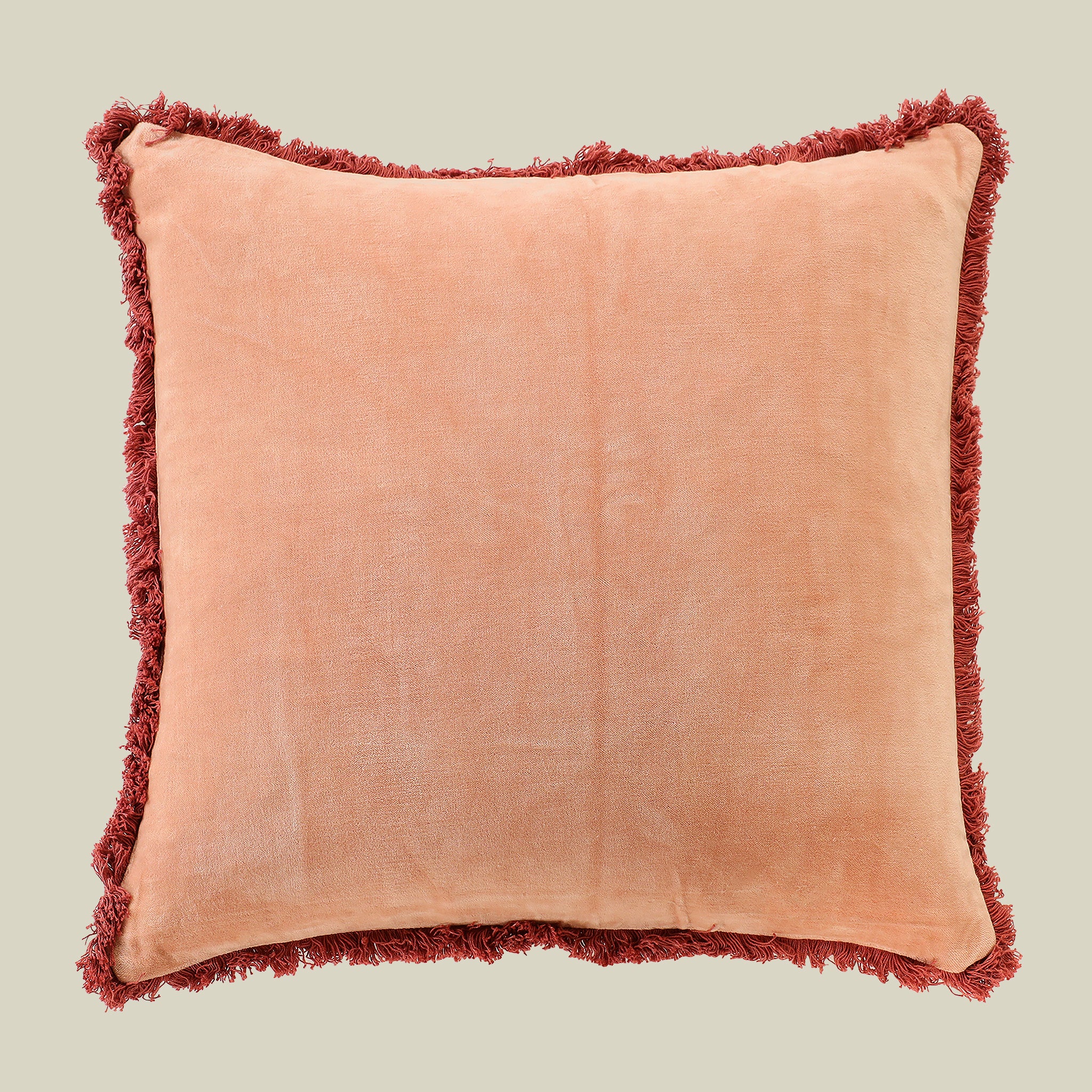 Add a decorative touch to any sitting area with this square accent pillow. Its versatile color, light fringe, durable covered zipper, and soft feel make it the perfect addition to your couch.