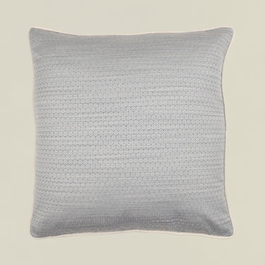 Enhance your living space with this cushion cover featuring a soft gray and white design.