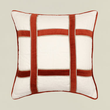 Make a bold statement with this daring cushion cover, featuring a striking red and white palette.
