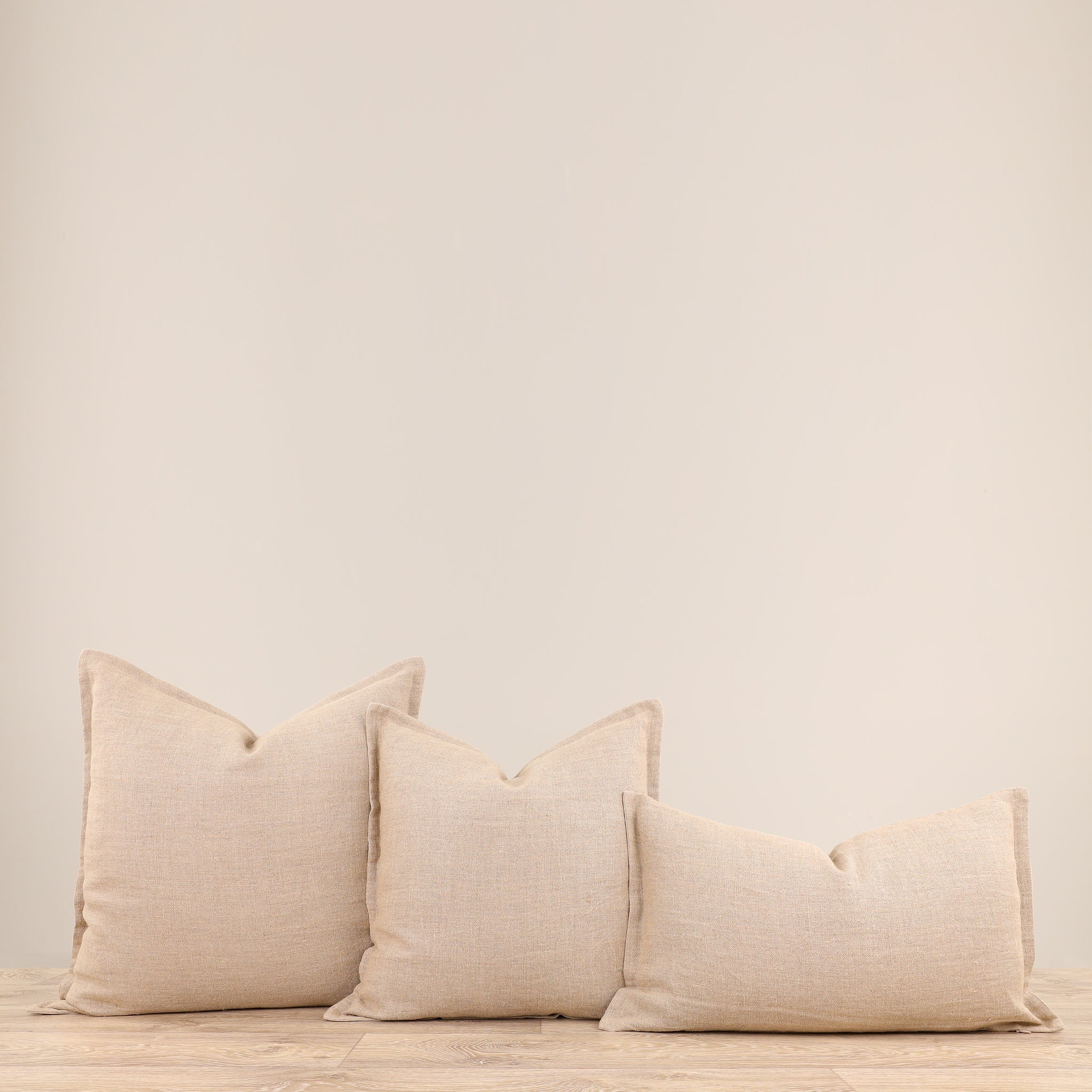 This refined cushion cover showcases the finest in artisanal textile design, with a pristine 100% linen facade paired with a hand-woven 100% cotton foundation.