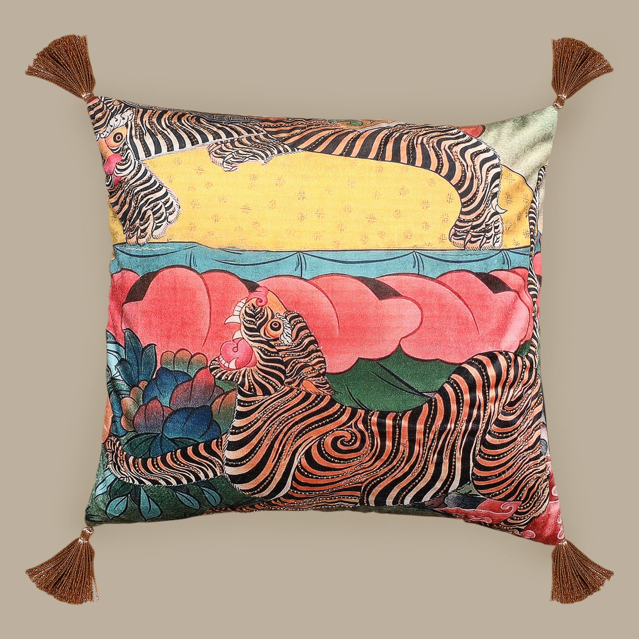 Material: Digital Print With Bead Emb Work And Gold Tassel All Corner.