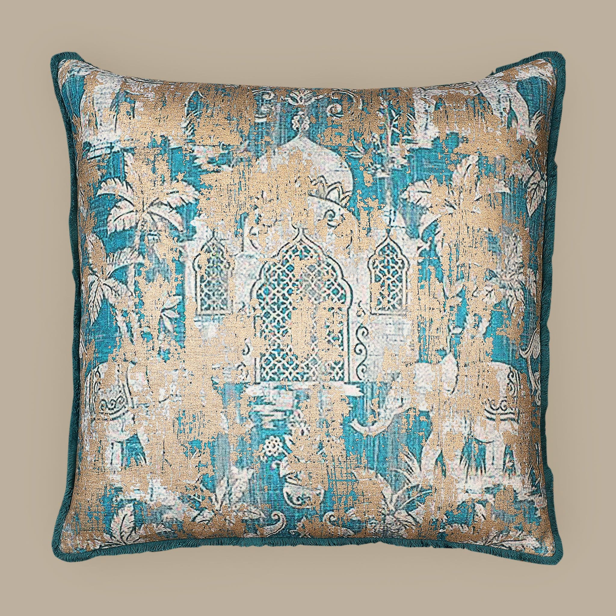 Material: Digital Print With Gold Foil Print With Teal Fringe Lace All Side.