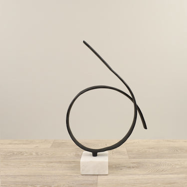 Lend your decor a unique element with this Decorative Ring Sculpture. Its contemporary style and rich black finish make this an easy piece to integrate into many decorating aesthetics.