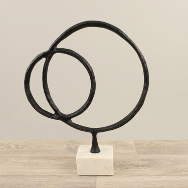 Lend your decor a unique element with this Decorative Ring Sculpture. Its contemporary style and rich black finish make this an easy piece to integrate into many decorating aesthetics.