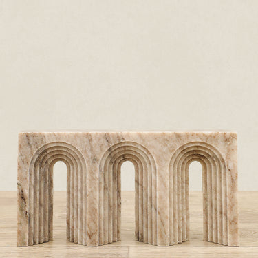 Introducing our modern Decorative Sculpture that captivates with its sleek lines and harmonious form. This piece is a masterful interplay of organic curves and simplicity. It is meticulously crafted from marble.