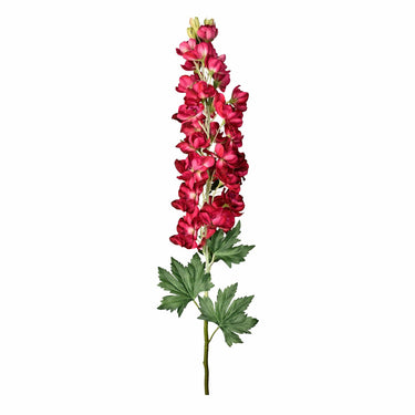 Tall and distinctive, this faux delphinium pick is a beautiful choice for a floral arrangement, wreath, or bouquet. Expertly crafted this artificial delphinium spray has five petal flowers and verdant leaves to lend beauty, interest, and texture to any display.