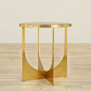 Introducing the Alzira Coffee and Side Table featuring a sophisticated bronze brushed stainless steel base topped with sparkling tempered glass for a touch of contemporary elegance.