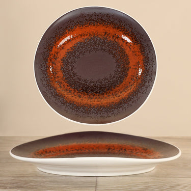 Set a sophisticated table with this porcelain dinner plate. Its generous size rustic rsuted stone finish make it easy to pair with other plates and serving pieces.