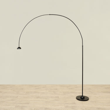 A sturdy base keeps this elegant arching floor lamp in place for use in any room. Crafted in metal with a gleaming gold finish this floor lamp is a versatile fixture for beautiful illumination and chic style. Aim the light right where it is needed for reading, relaxing, or entertaining.