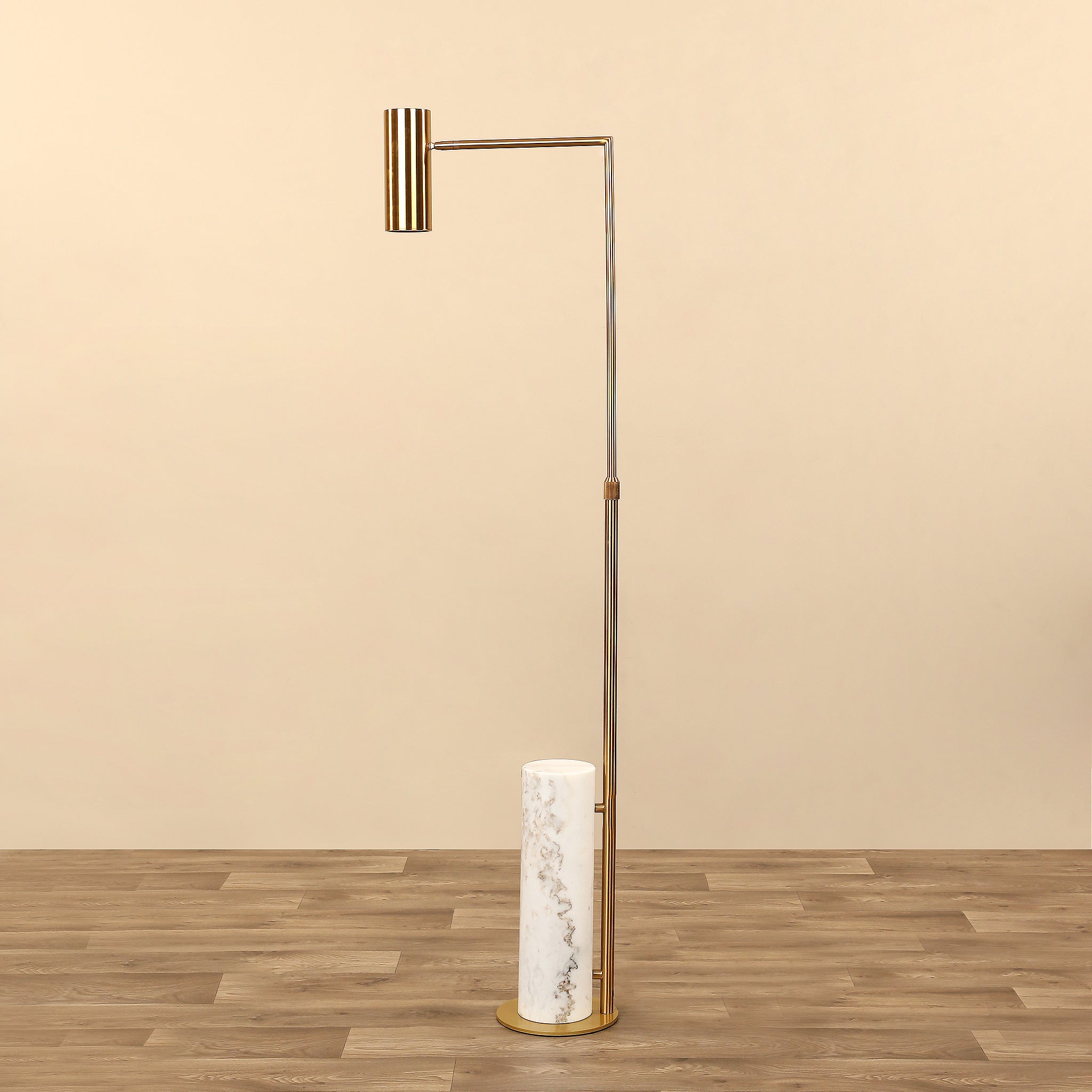 This slender floor lamp features a shining bronze finish and a cylindrical shade to shine its light directly onto your novel or notebook. The luxurious marble base offers stability as well as style.