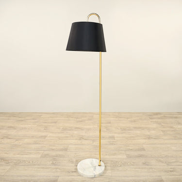 Classic style gets a modern lift with this elegant floor lamp. Finished in lustrous bronze this lamp has a sumptuous marble base that contrasts perfectly with the classic black shade.