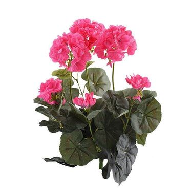 Long a favorite for avid and casual gardeners, the Germanium is recognizable by its lush ruffled blooms and large green leaves. This artificial geranium stem could be used in a pot for cottage charm or tucked into an arrangement or wreath for maintenance-free beauty.