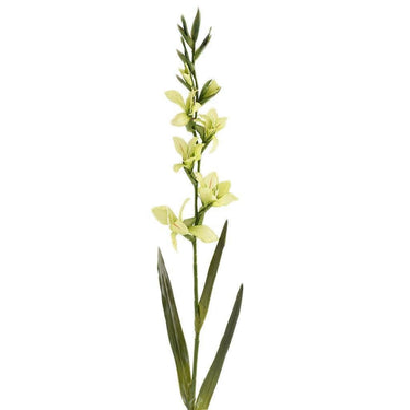This authentically detailed stem of Gladiola appears to be so living that must be touched to be distinguished from nature's own. Its large flowers with ruffled petals that climb up each create the perfect decoration for a special interior.